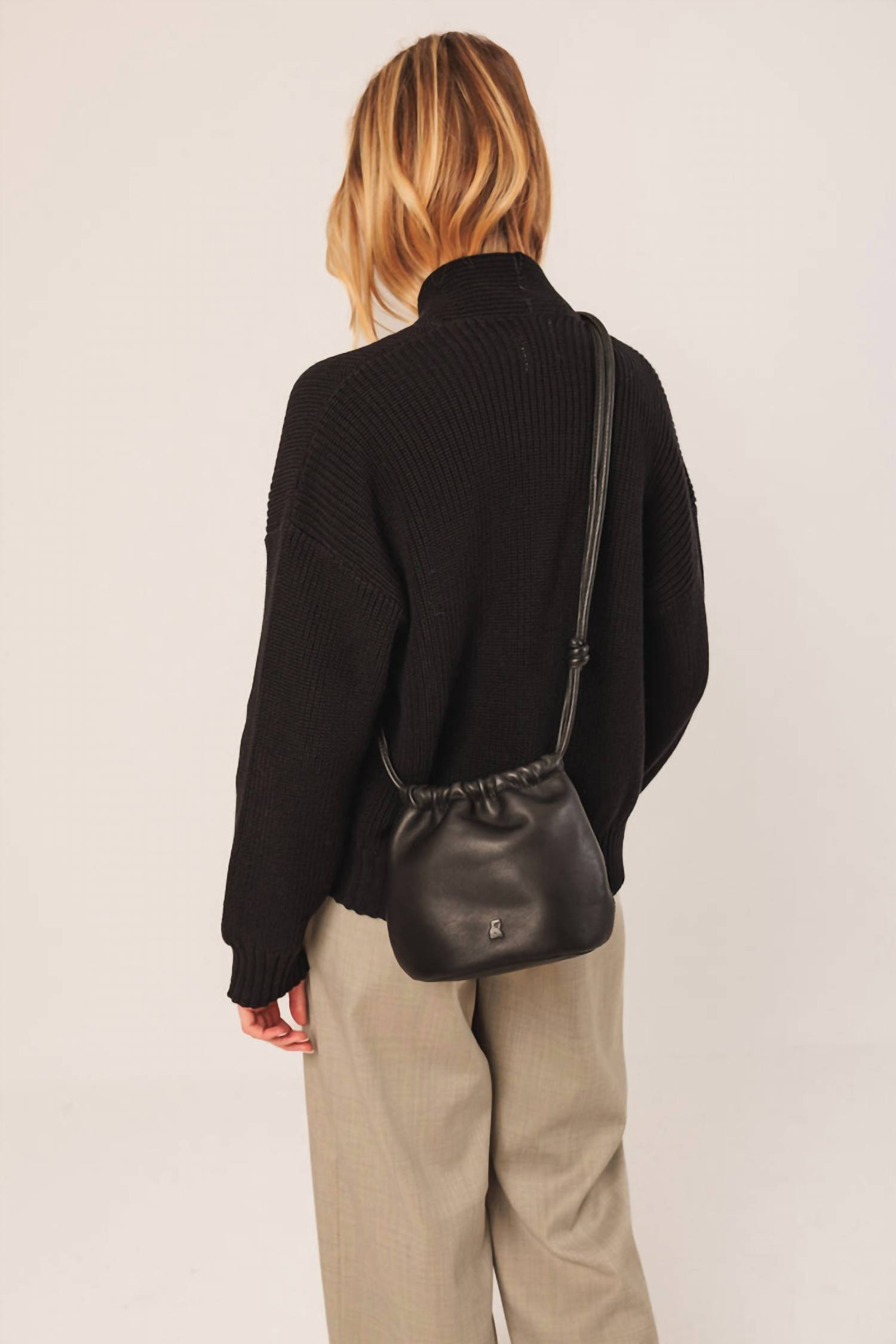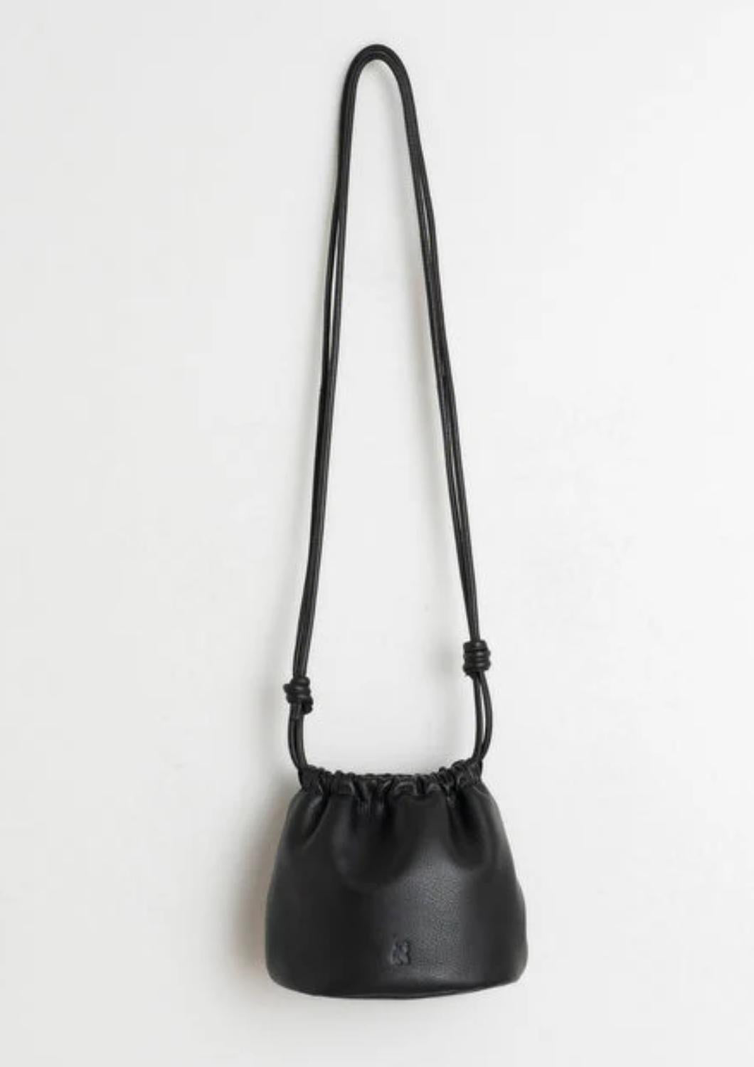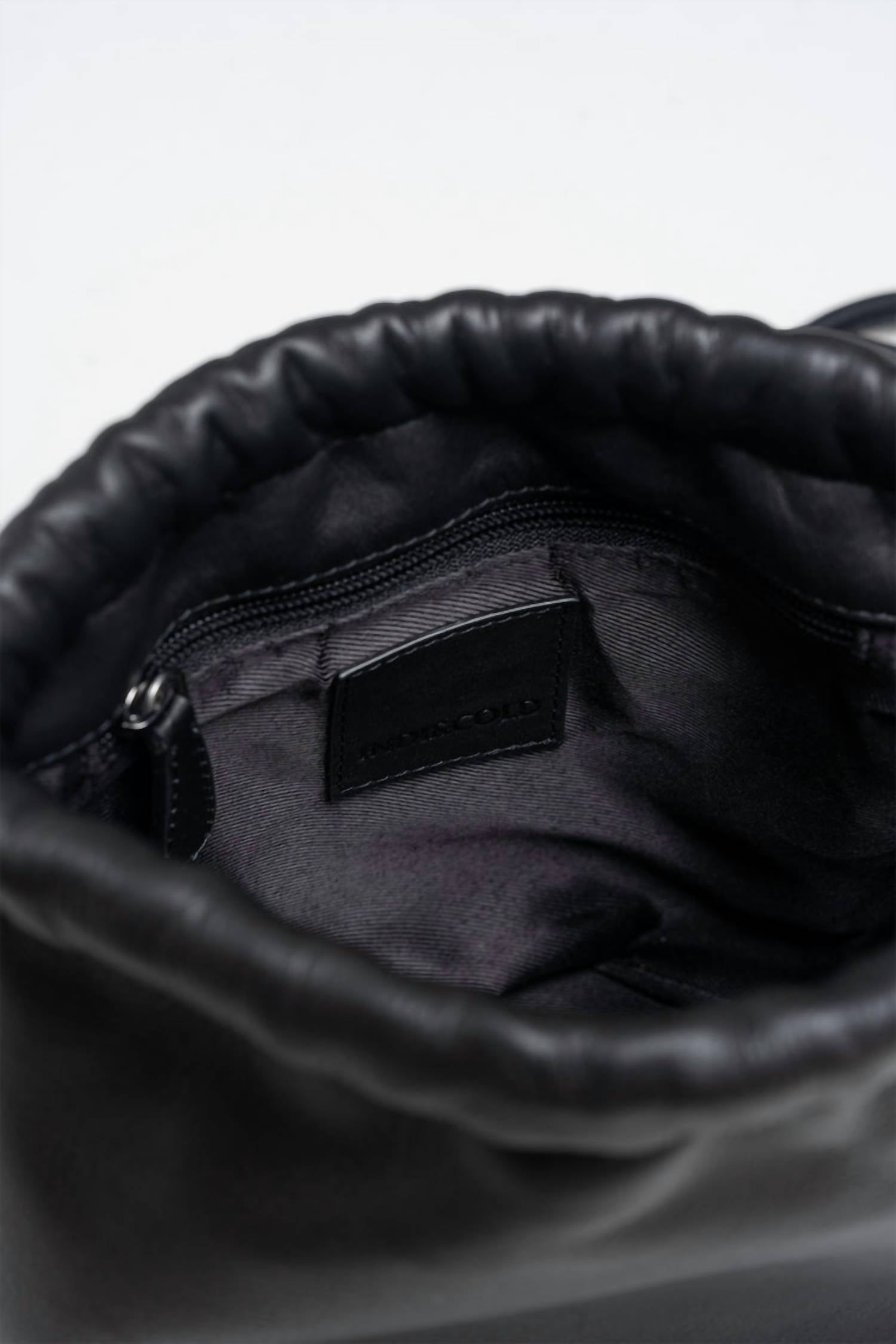 This crossbody bag will be your go-to bag of the season. Discover the Women's Gathered Leather Bag by Indi & Cold, where elegant simplicity meets functionality. Crafted from 100% cow leather, this black crossbody bag features a chic knotted strap and a practical cinch top. Made in Spain, it promises quality and style for your everyday adventures.