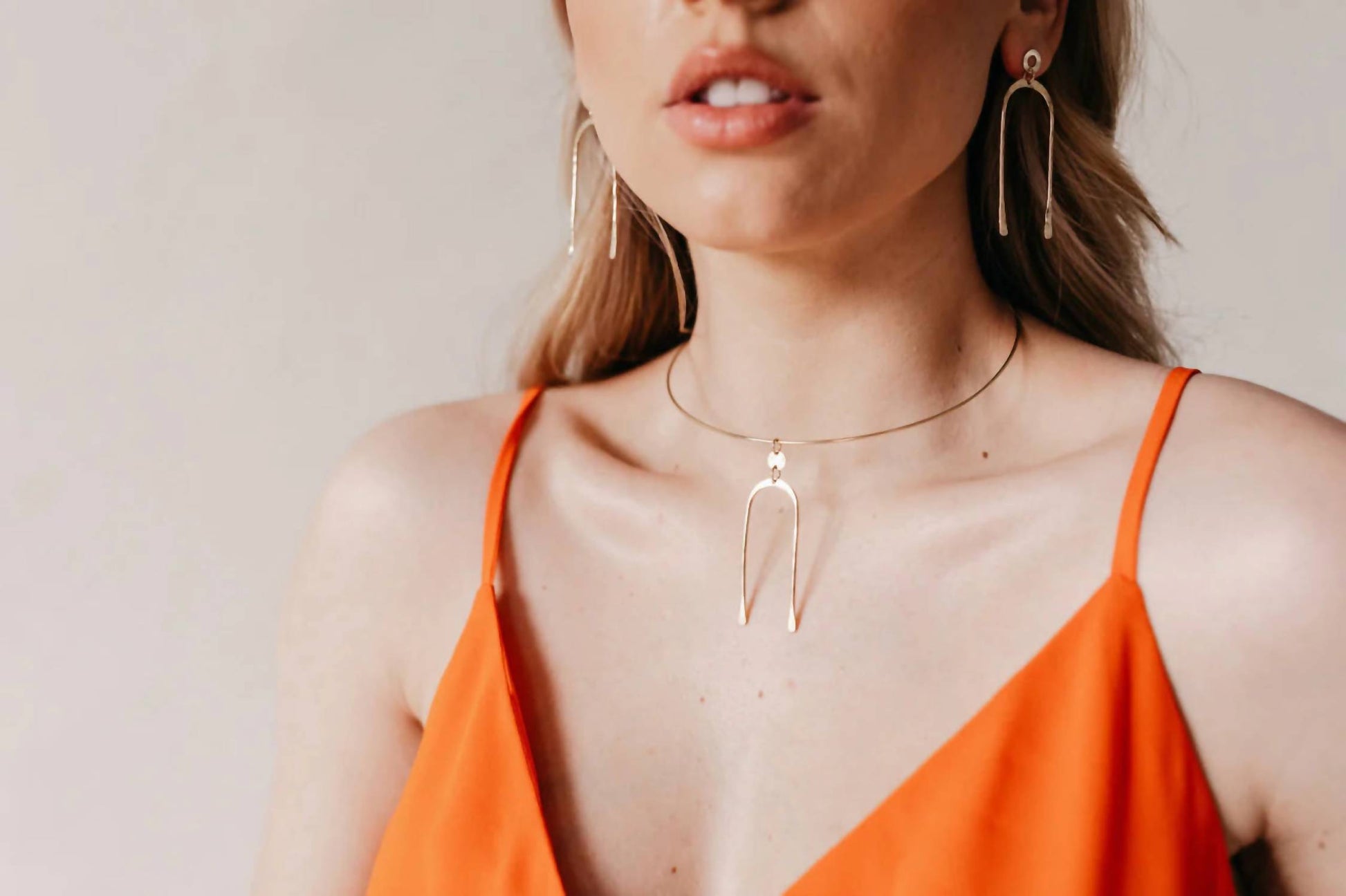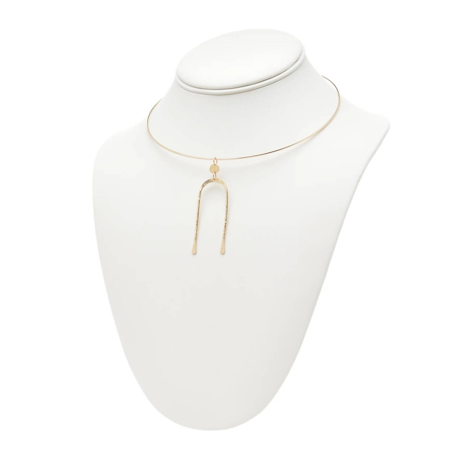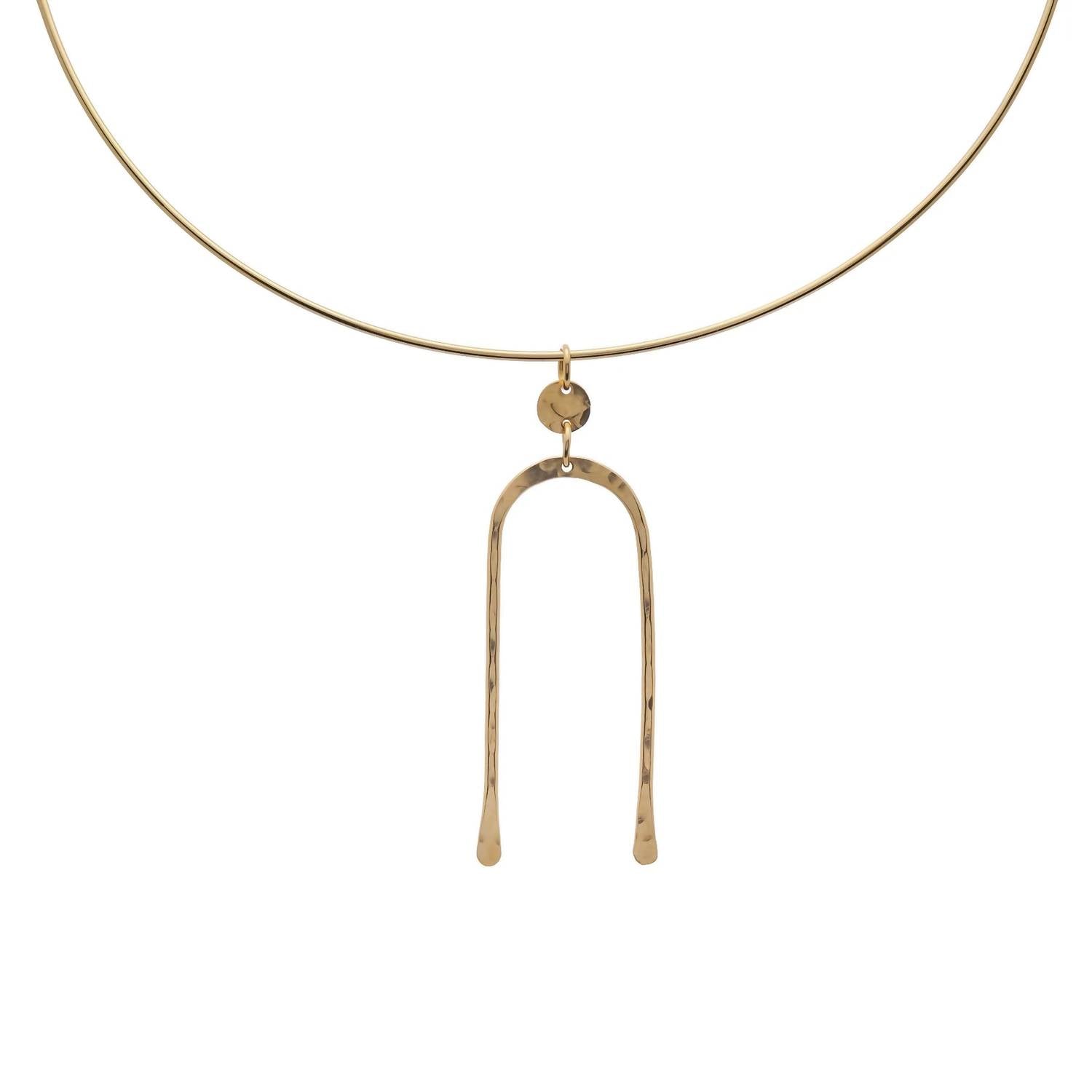 Layer this necklace or wear it on its own. Either way it's a win-win. Elevate your jewelry collection with the Women's Archies Neck Wire Necklace by Kenda Kist, designed for modern sophistication. This fine jewelry piece features a lightweight arch pendant, masterfully hand-cut, and suspended on a sleek neck wire. Available in a chic 14k Gold Filled finish, this goldtone necklace echoes the grace of rainbows, symbolizing beauty and new beginnings. Ideal for those who appreciate versatility and contemporary artisan flair.