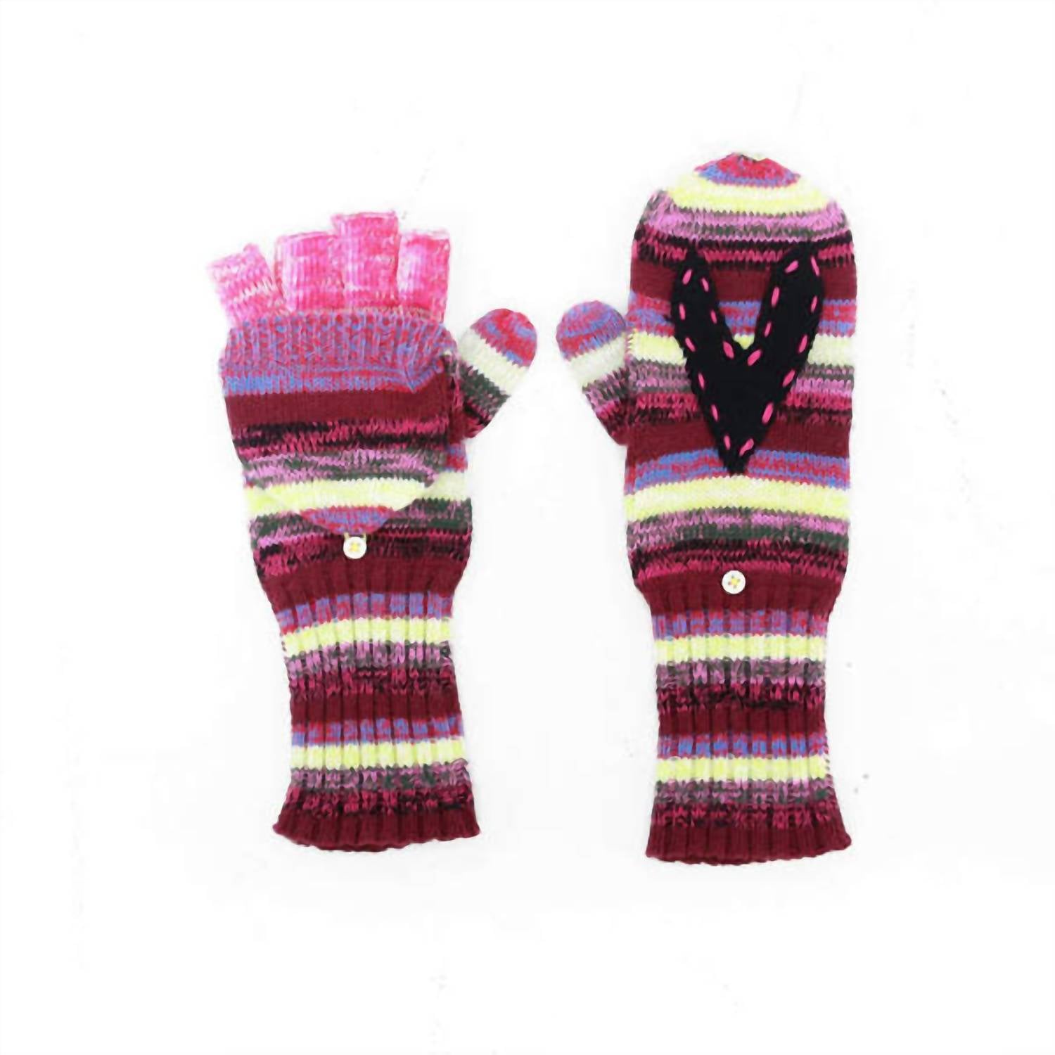 Add a playful touch to your winter wardrobe with these cute and stylish gloves. Expertly designed to keep your hands warm and toasty, these are the perfect winter accessory for those cooler temps. Our mittens are back with love, as always! The Stripe Mitten features Kerri's imperfect heart, with buttons to access to your fingers in a cotton-cashmere blend. These mittens work back to our beanies and scarves. Great to get and great to gift! - 95% Cotton 5% Cashmere - One size: 10.5"L - Imported - Machine wash cold, lay flat to dry Fit Tip Fits true to size. Fabric / Material - 95% cotton 5% cashmere