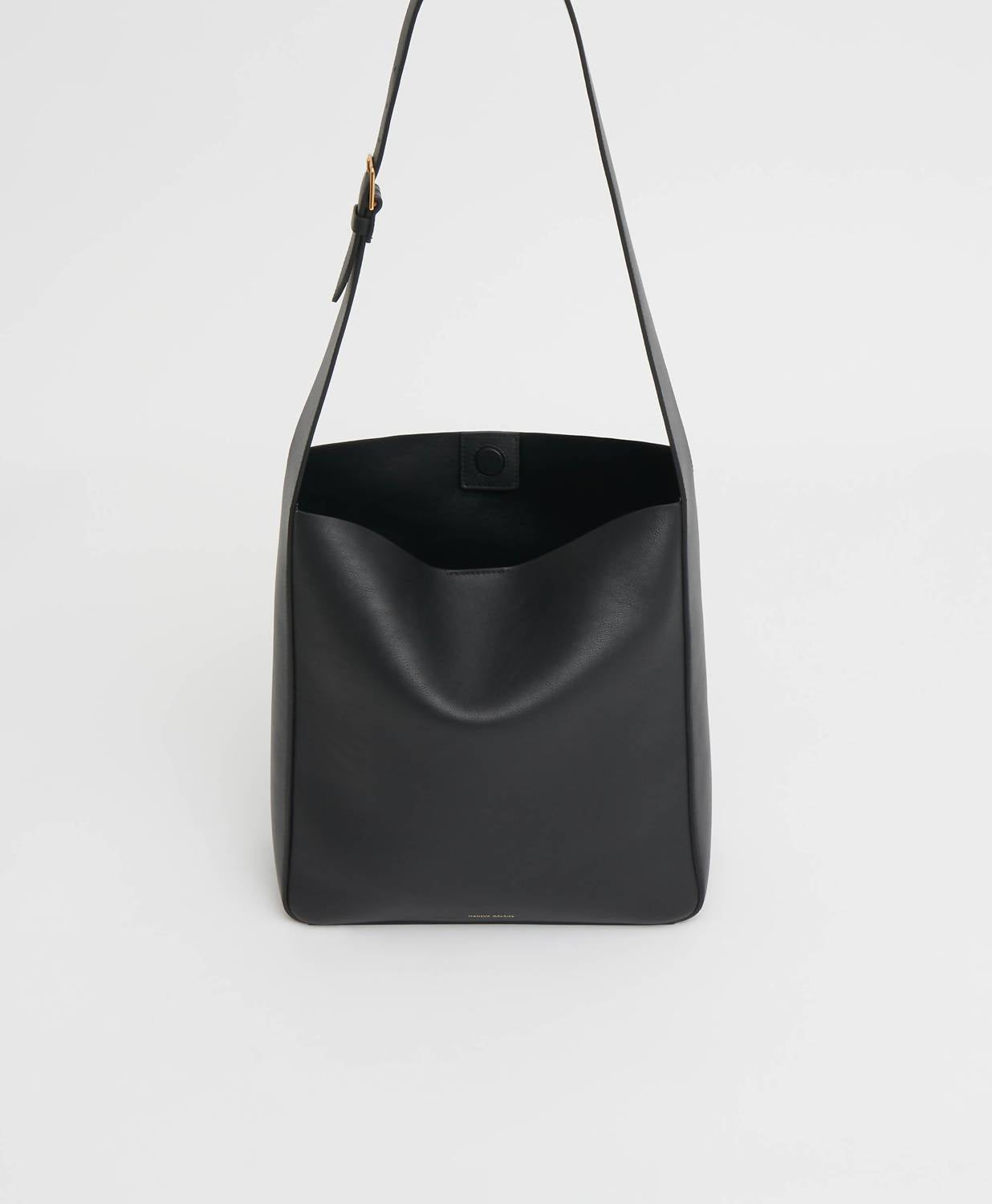 Introducing the Women's Box Tote by Mansur Gavriel, a sophisticated design perfect for the modern woman. Crafted from 100% Italian soft calf leather and lined with luxurious Italian lambskin, this tote showcases expert Italian craftsmanship. The tote measures 11 inches in width, 11.8 inches in height, and 4.7 inches in depth, ideal for carrying your essentials, including a 13” laptop. Featuring a magnetic closure and an adjustable buckle strap, it promises effortless style and functionality. For longevity, condition the leather occasionally and avoid abrasive surfaces. This timeless piece is available in black.