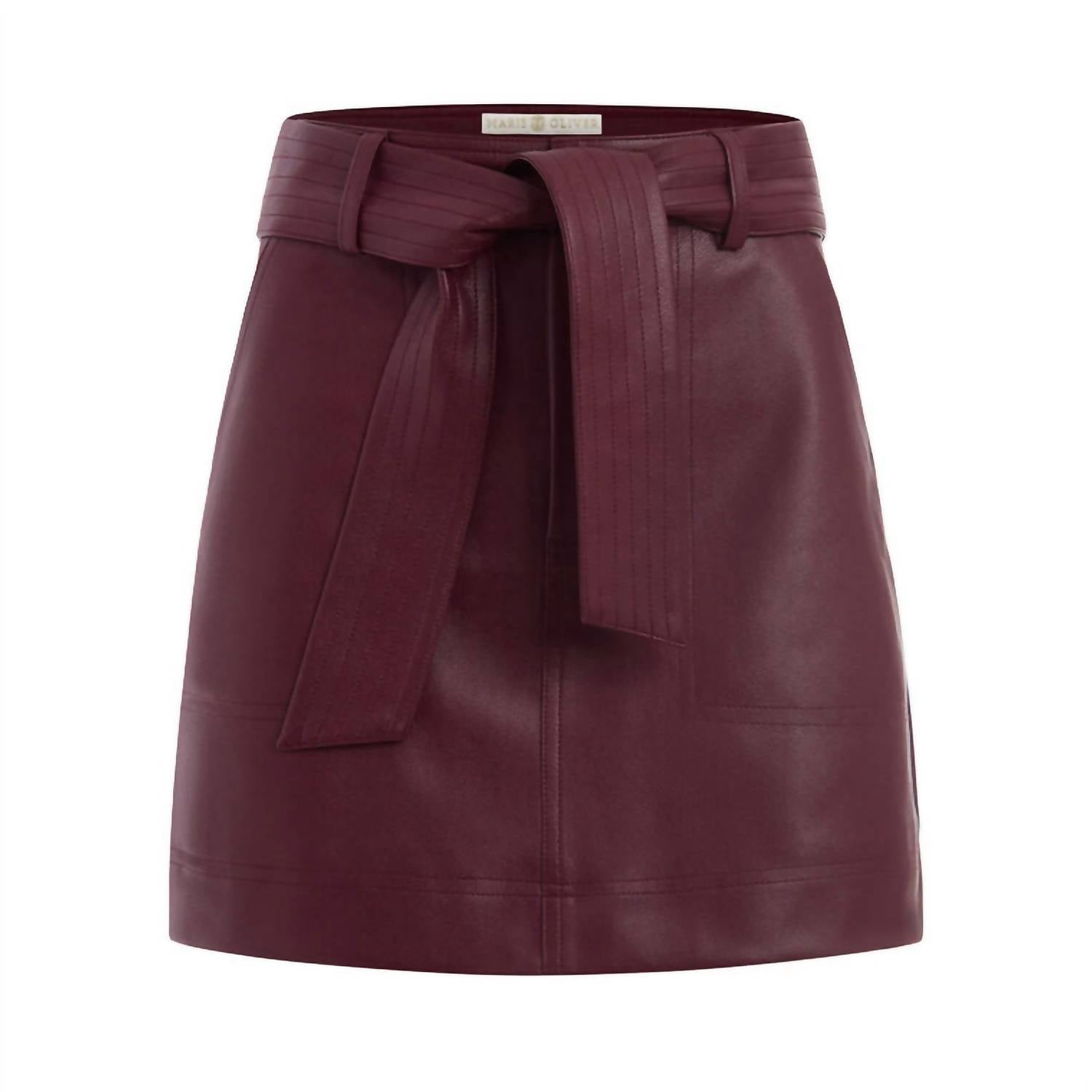 Show just the right amount of leg in this fit flattering mini. Elevate your summer wardrobe with the Women's Merlot Vallie Skirt by Marie Oliver, a chic choice for any vacation. This mini skirt in a striking maroon hue features a solid pattern and tie closure for a personalized fit. With no pockets to interrupt its sleek silhouette, it embodies a maximalist trend that's perfect for the sunny season. Pair it effortlessly for both casual and semi-formal occasions.