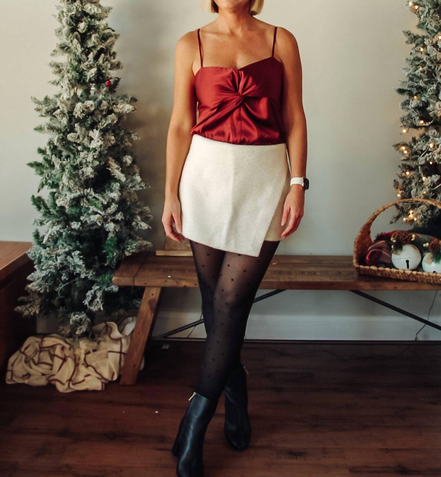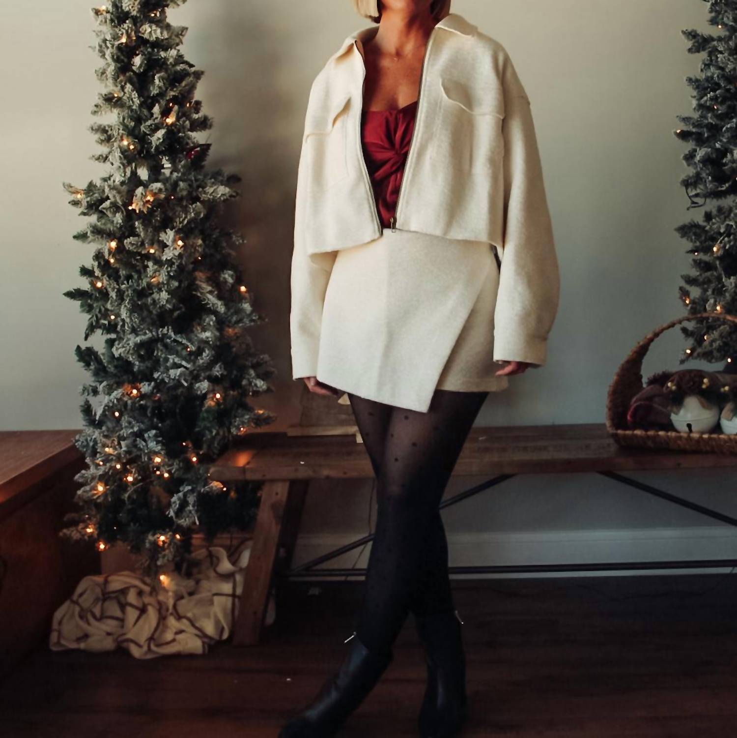 A skirt that you can do just about anything in? We love a good skort, especially this one! Elevate your everyday wardrobe with the Grace Textured Skort by MIOU MUSE, a chic and sophisticated piece in classic white. Crafted from cotton, the skort features a visually intriguing textured fabric and an asymmetrical hem, offering a modern silhouette. It includes a discreet zip closure at the back for a seamless fit. Ideal for minimalist trends and perfect for a winter holiday party, this skort brings understated elegance to any occasion.