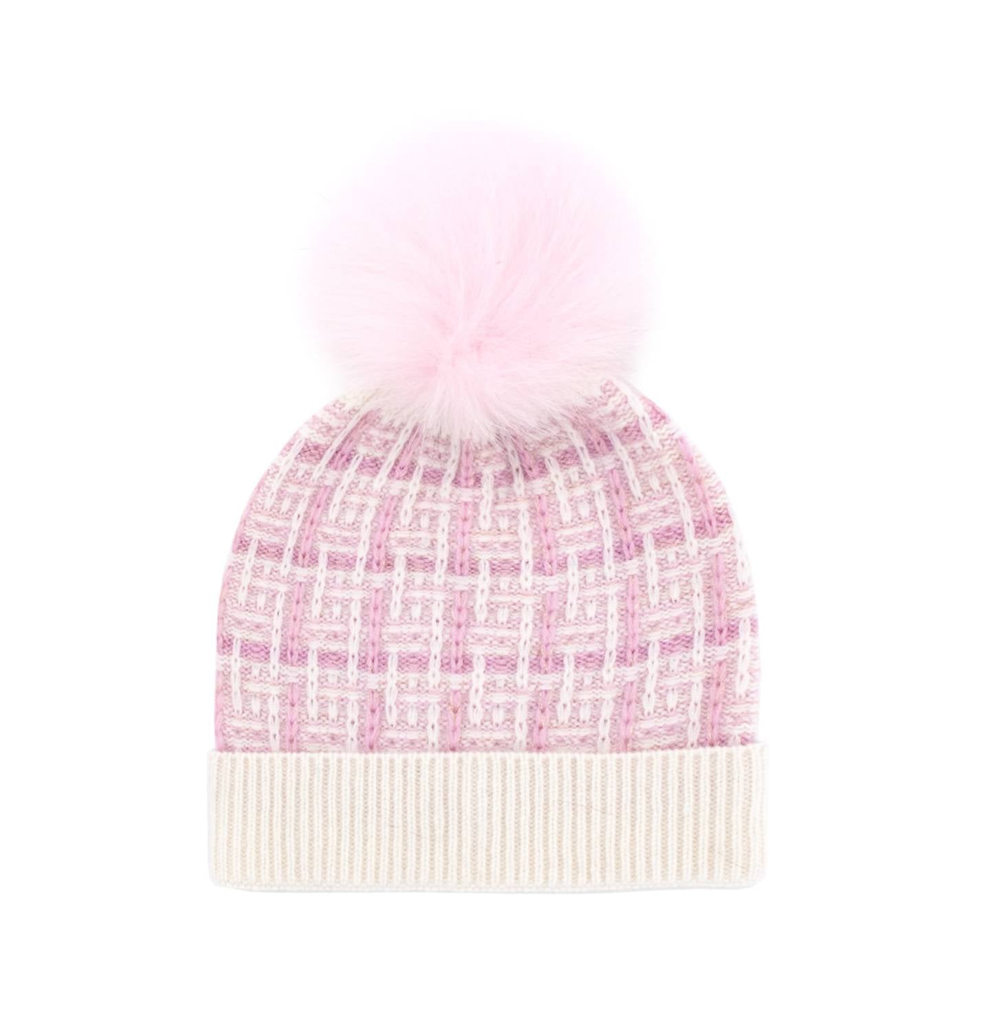Not only will this hat get you tons of compliments, but it will also keep the sun out of your face which is a must! Wear it with any outfit for the perfect finishing touch. Elevate your winter wardrobe with the Women's Tweed Fox Pom Knit Hat by Mitchie's Matchings in a charming soft pink. This hat is crafted from a quality knit that resists pilling, maintaining its structured silhouette for lasting wear. Featuring a luxurious fox fur pompom, it adds natural movement and dimension to your look. A versatile addition that seamlessly combines warmth and refined style for any cold-weather occasion.