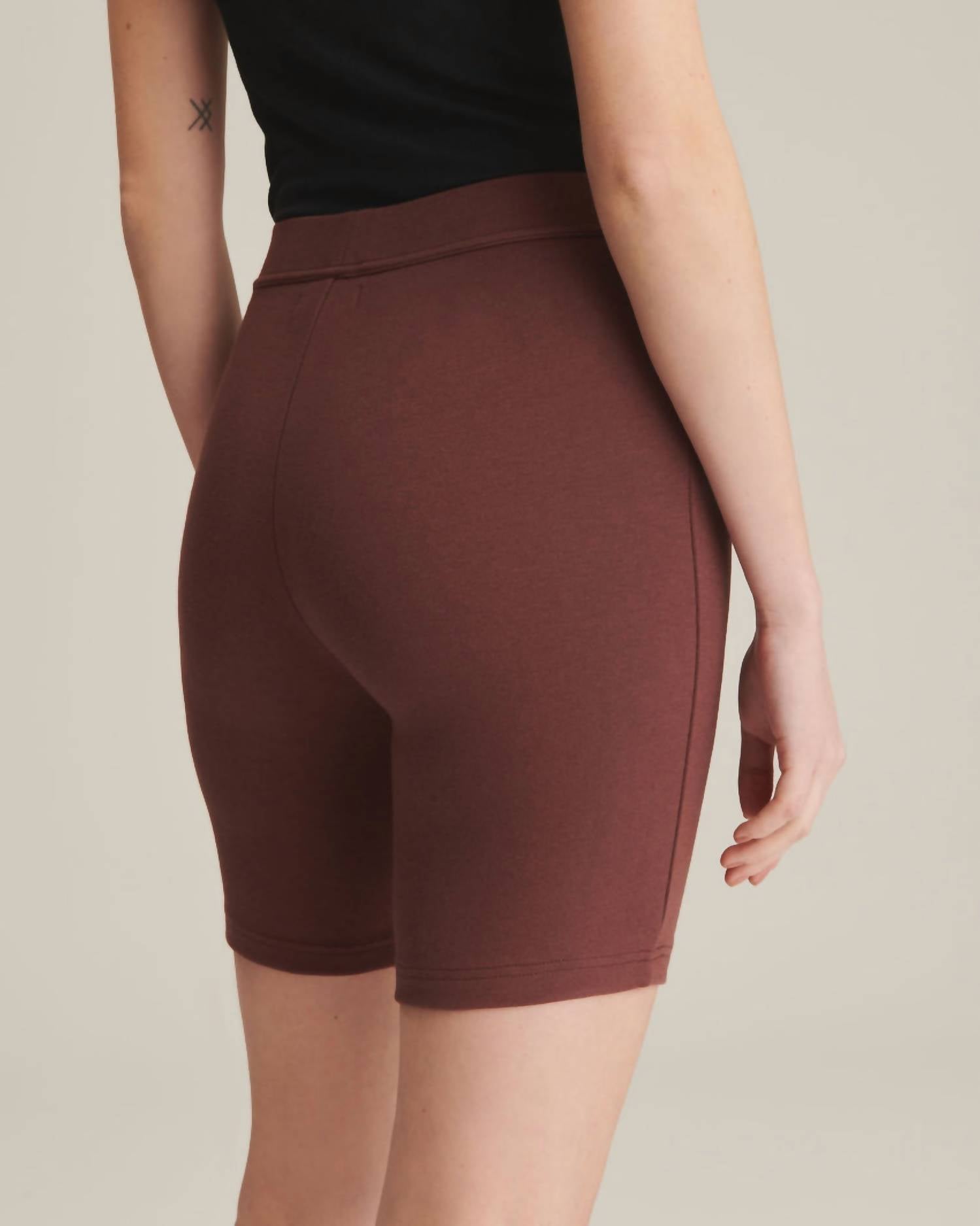 The bike short trend is here to stay and we especially love this style for its design detail and soft fabric. Introducing the Modal Cashmere Soft Bike Shorts by NAADAM, a stylish choice in the color Fig for the discerning athleisure enthusiast. These bike shorts, perfect for summer vacations, feature a solid pattern and a comfortable pull-on design. Crafted from a cotton blend with 48% Micro Modal, 45% Cotton, 5% Cashmere, and 2% Spandex, they are produced in China. For care, machine wash or dry clean these shorts, avoiding bleach, and lay them flat to dry to maintain their silky-soft, ultra-flattering fit.