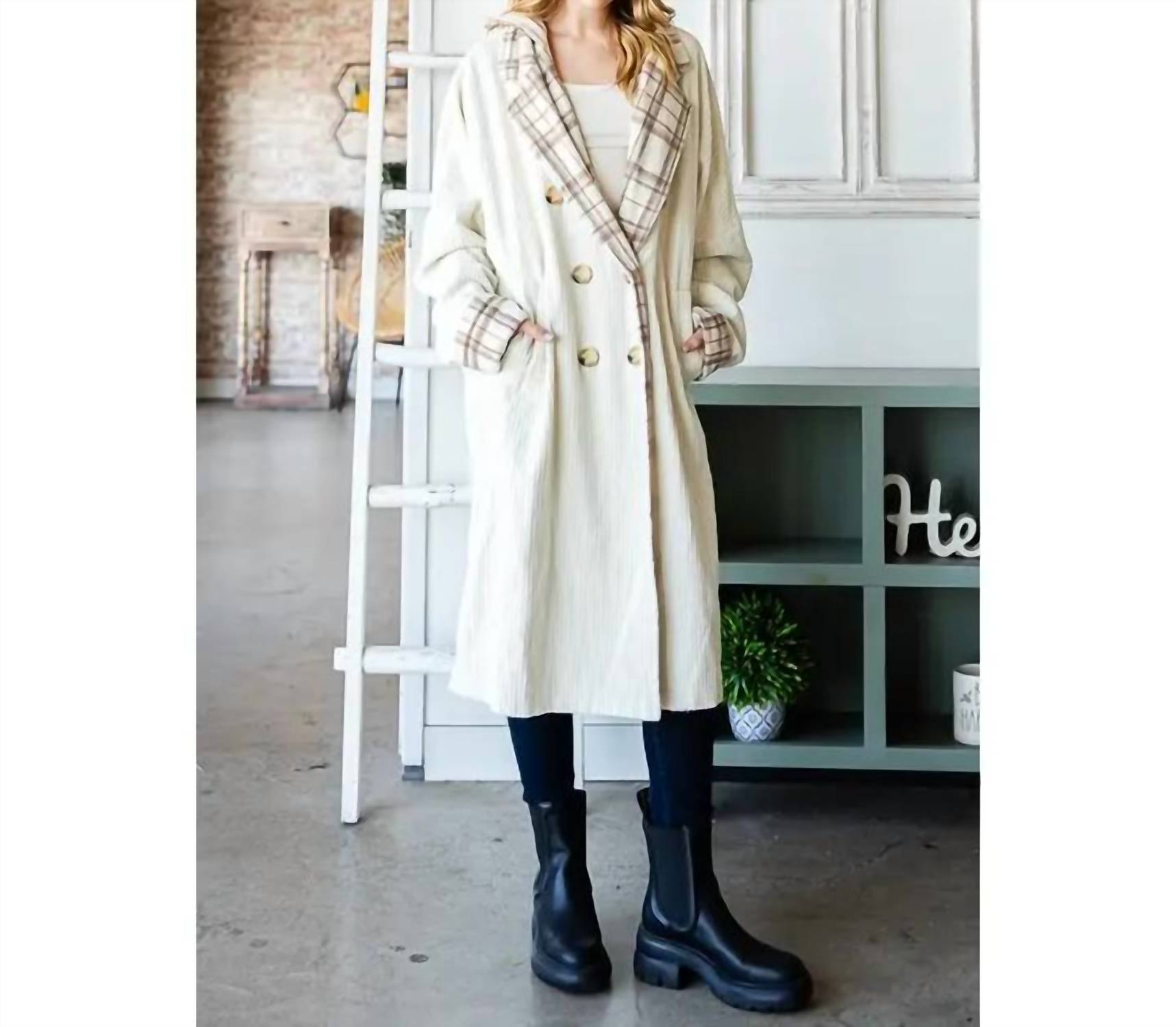 A timeless classic. You'll be reaching for this trench every season. This corduroy jacket brings a refined update to classic outerwear with its timeless plaid and check pattern. Designed with long sleeves and a traditional collar neckline, it offers a polished trench-inspired silhouette that’s both stylish and versatile. Thoughtfully detailed for everyday wear, it’s an effortless layering piece that blends practicality with elevated, modern appeal.