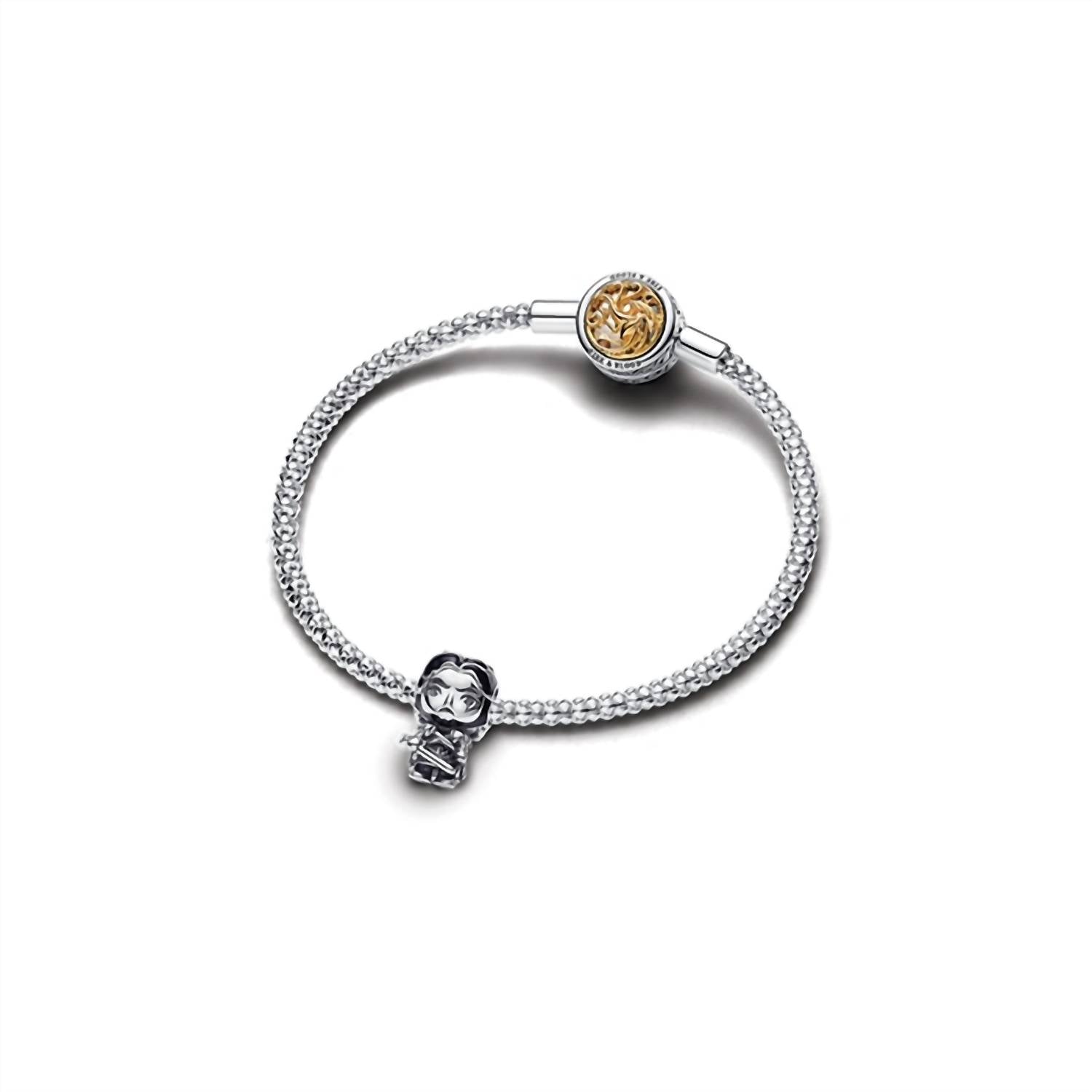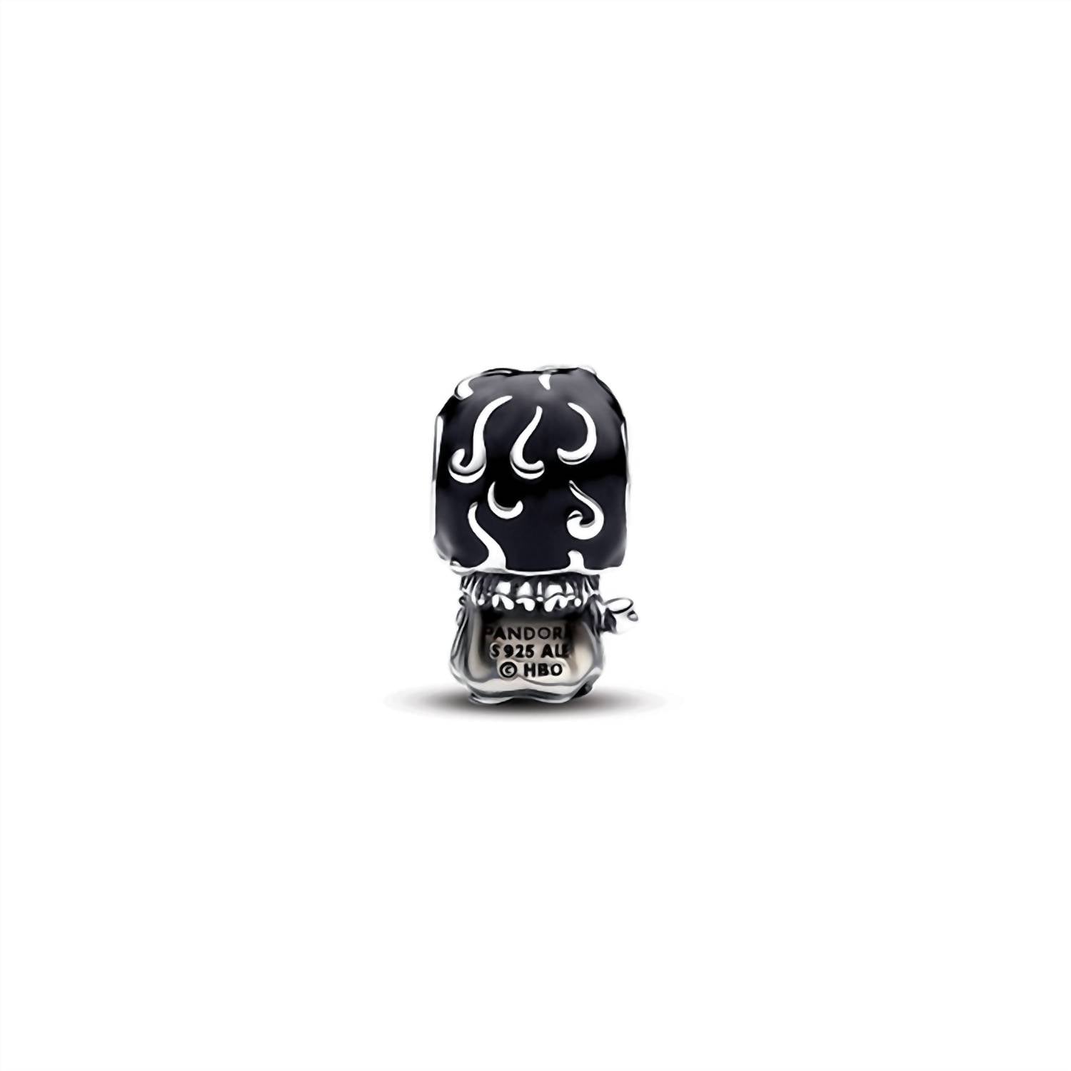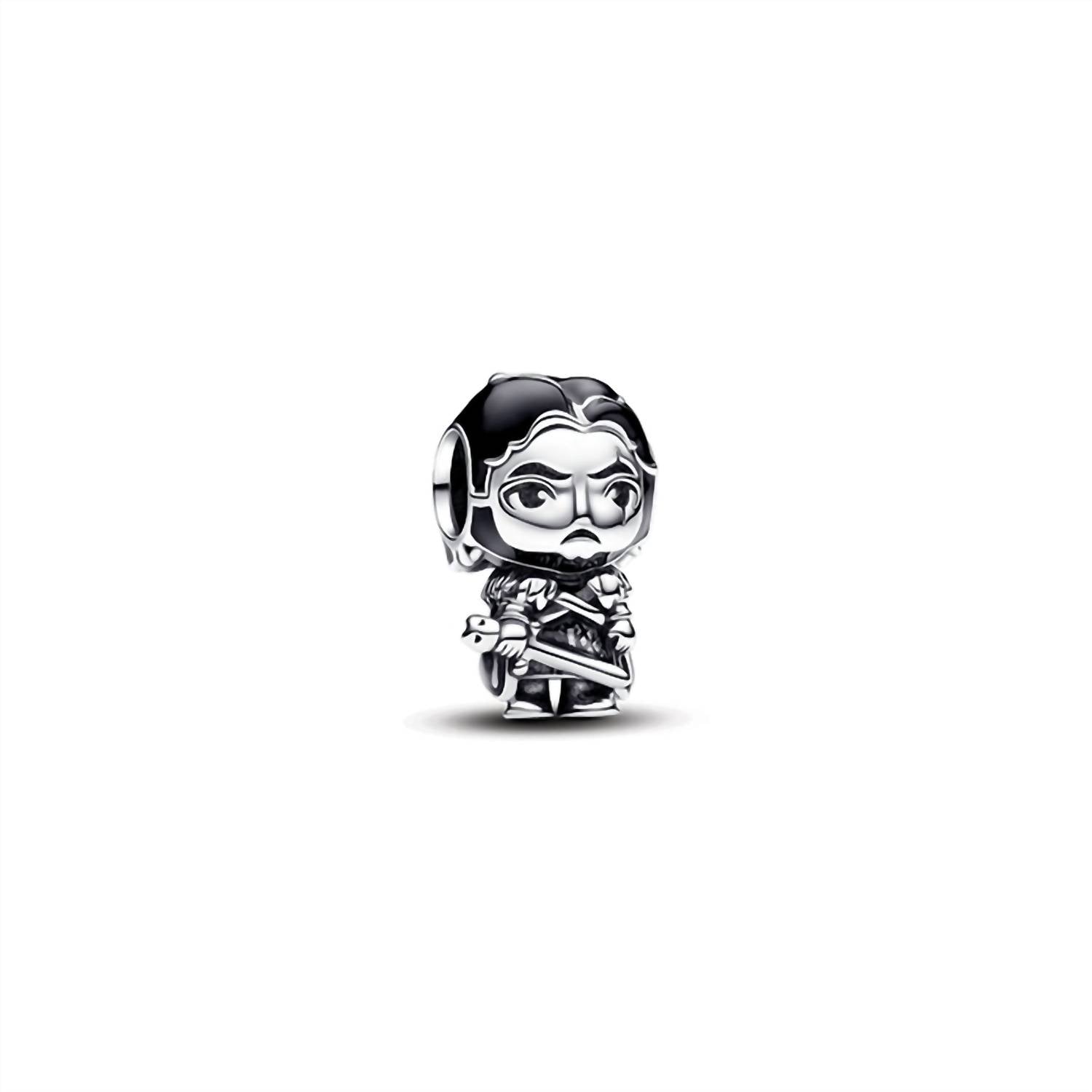 Wear your house allegiance with our Game of Thrones Jon Snow Charm. Crafted in sterling silver, the charm depicts Jon Snow with his trademark features including a scar on his left eye, a moustache, dark curly hair and his iconic cape with fur around his neck. The details are highlighted in hand-applied enamel for depth of colour. He is also carrying a sword with the head of a Direwolf, his family's sigil of loyalty and courage. Wear it as support for the King in the North or gift this Game of Thrones x Pandora charm to someone special. Charm only.