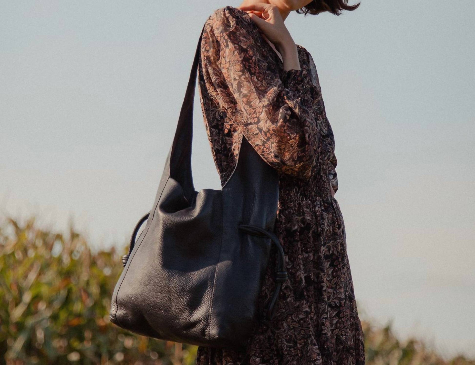 Per Lei New York - Women's Seneca Leather Drawstring Shoulder Bag