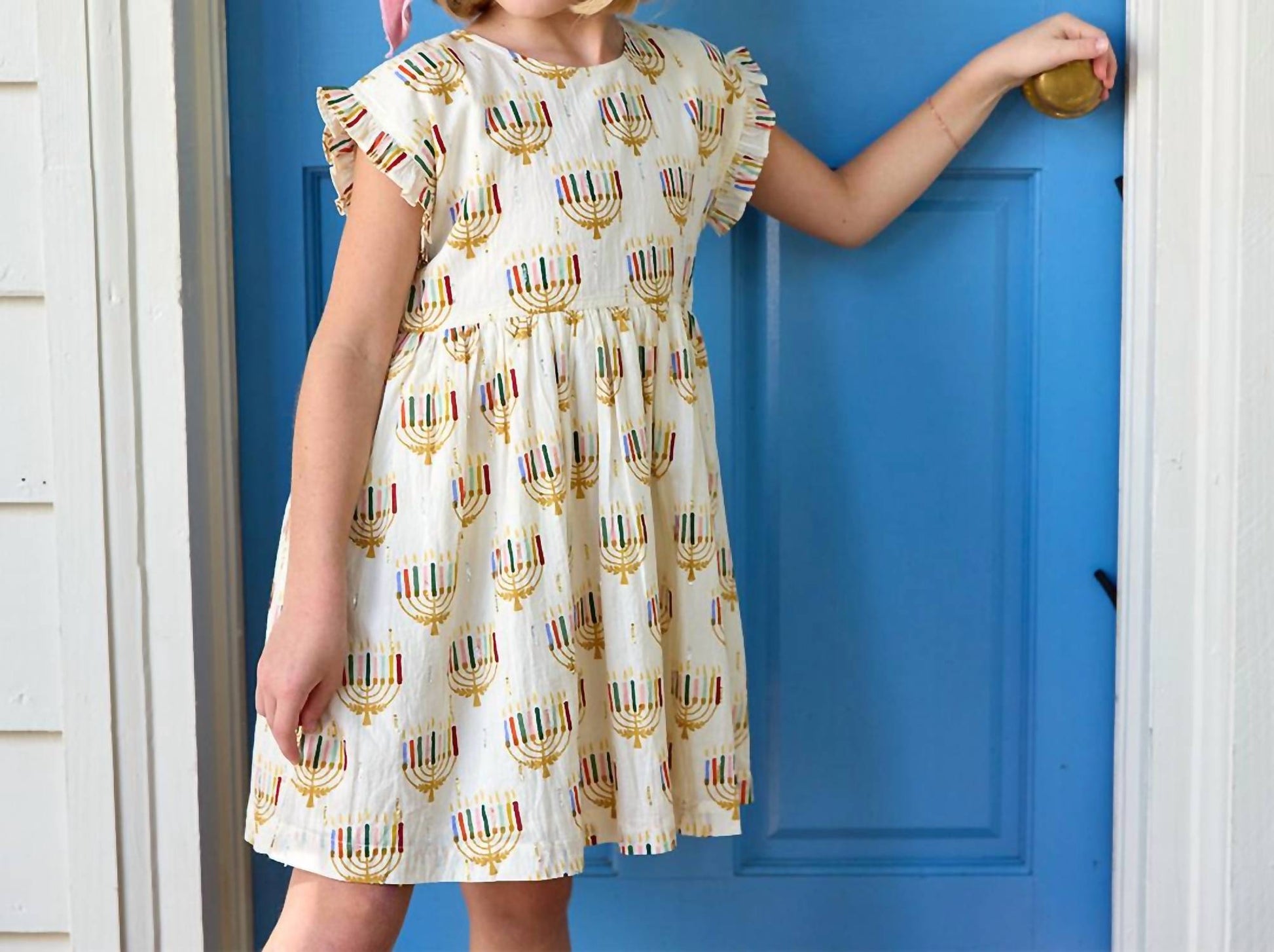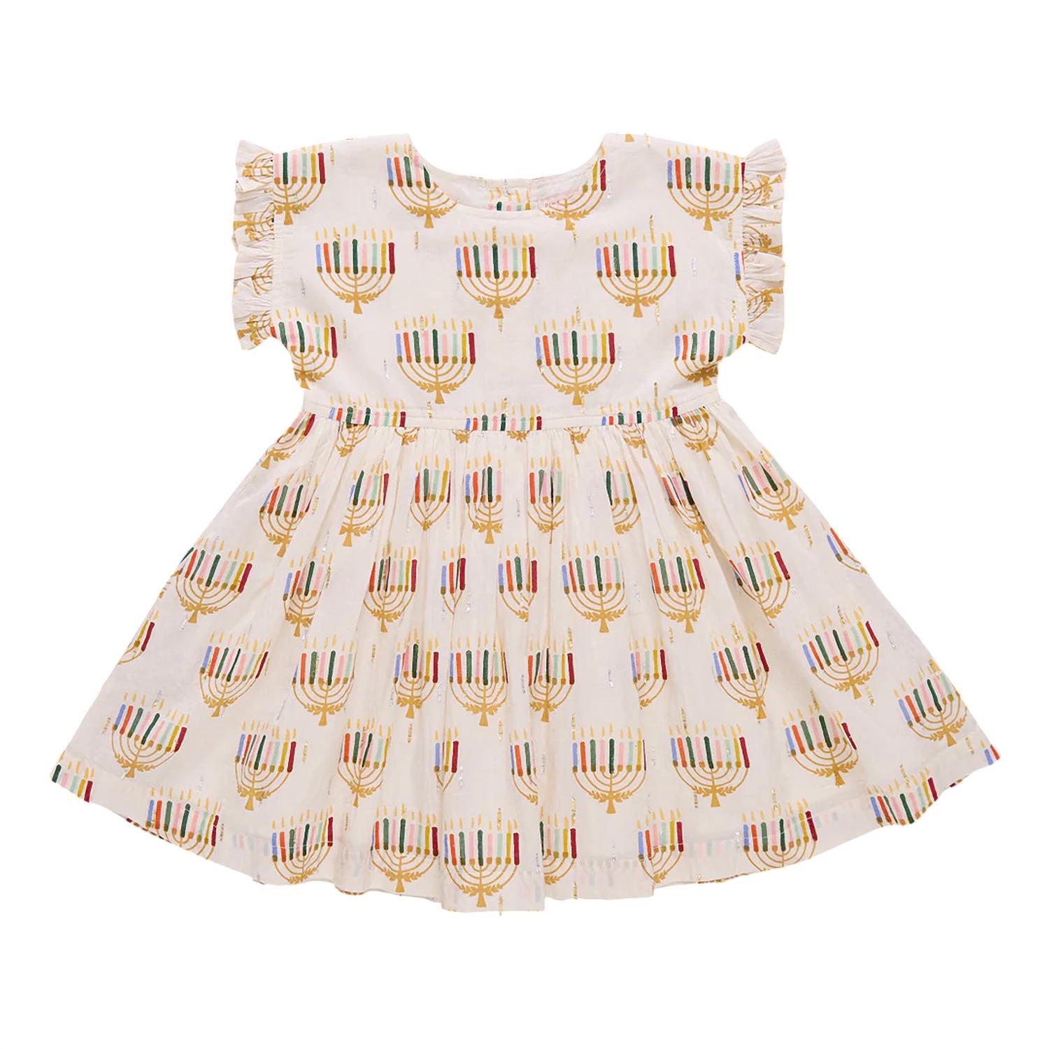 Add a splash of festive charm with the PINK CHICKEN Adeline Dress, designed in a delightful Colorful Menorahs print. This casual dress is crafted from 100% cotton, ensuring it remains soft and comfortable for your little girl. Proudly made in India, it’s perfect for holiday parties, particularly Thanksgiving, while embracing a boho chic aesthetic. Easy to care for, simply machine wash and tumble dry to keep it looking fresh and ready for endless twirling.