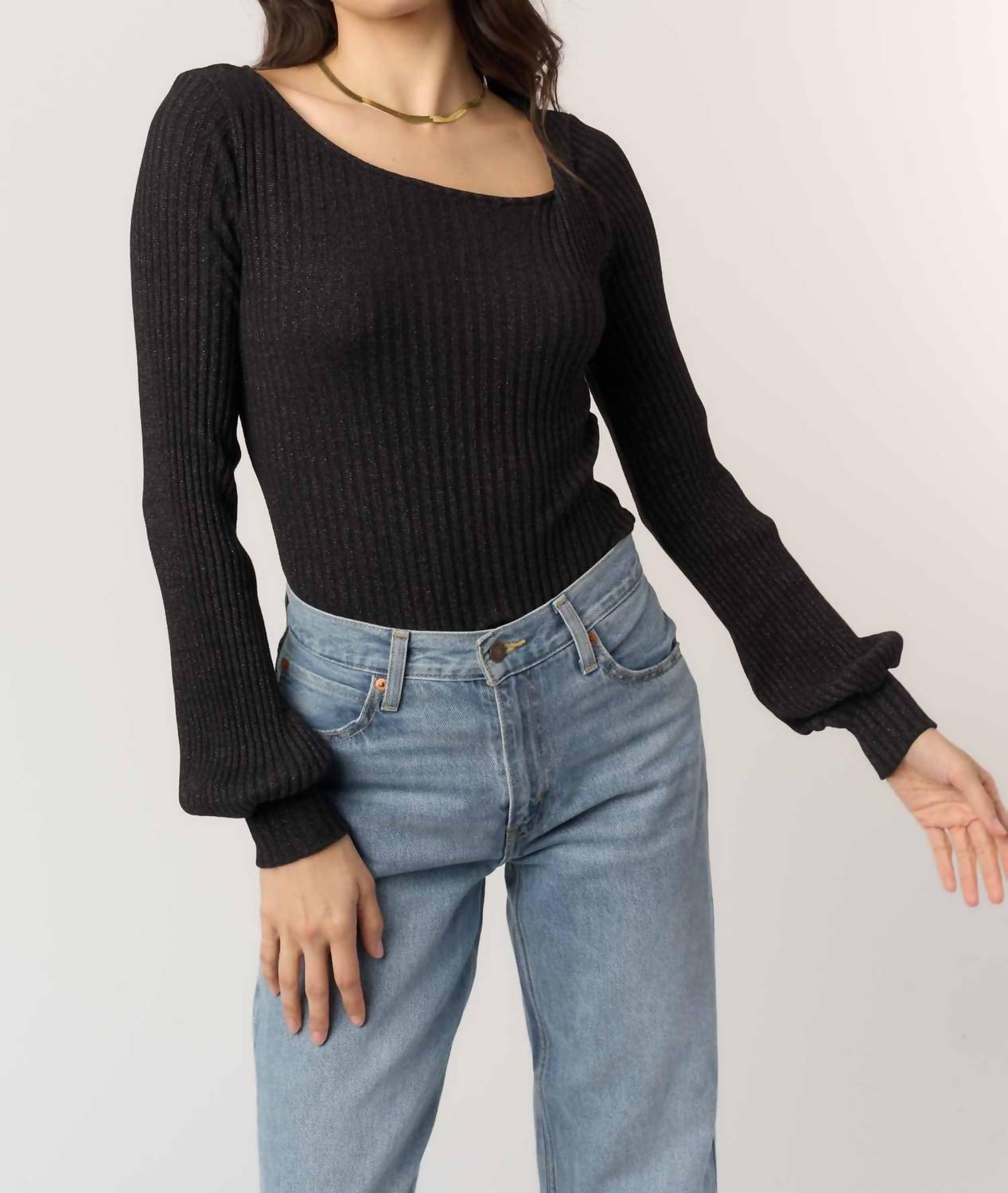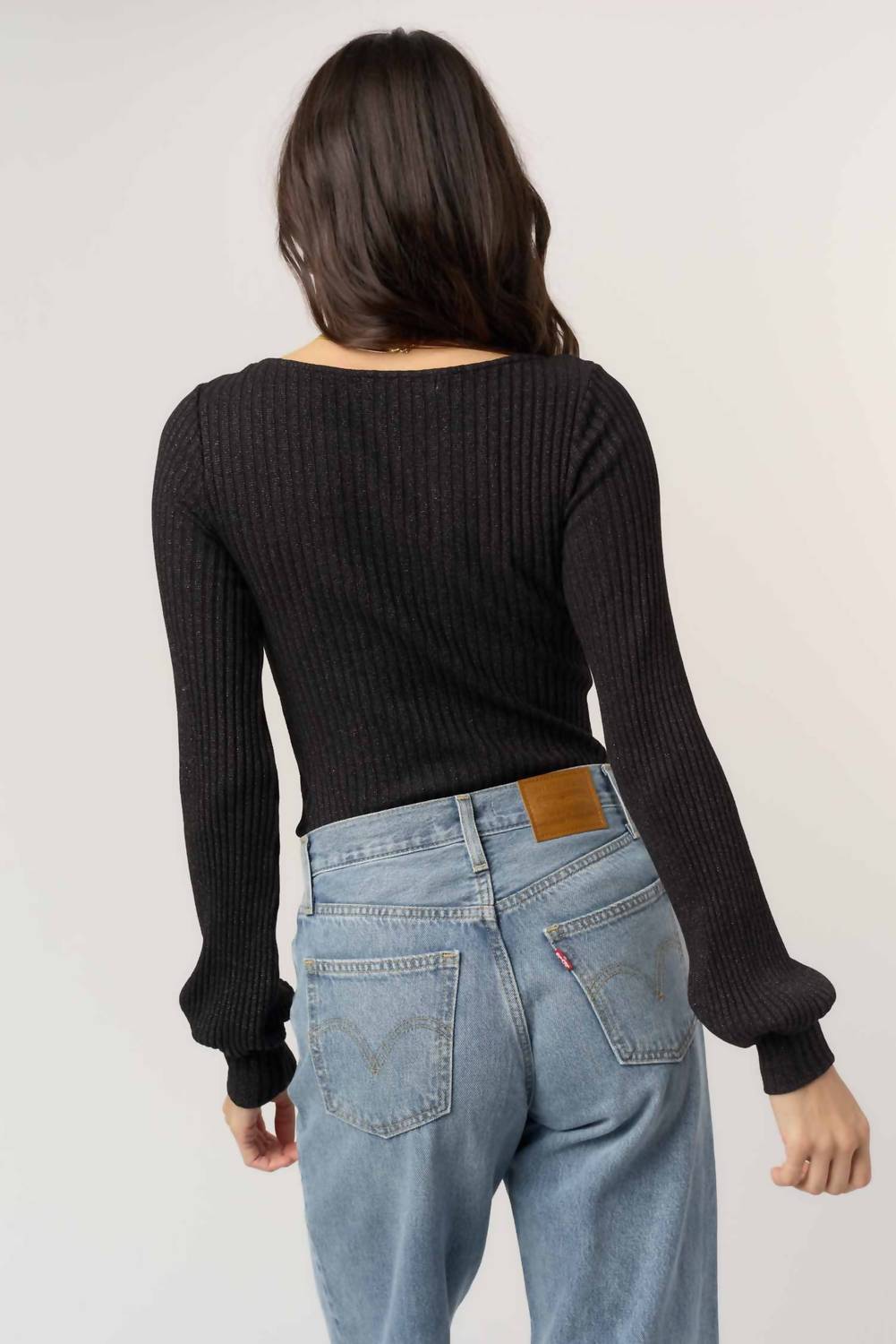 You'll be reaching for this comfy and classic v-neck sweater all season long. Experience the minimalist charm of the Mood For Love Twist Front Rib Long Sleeve by PROJECT SOCIAL T. This black, cotton blend top features a ribbed texture with just the right amount of stretch, a flattering scoop neckline, and long sleeves with puffed cuffs for a touch of gentle volume. The pull-on style makes it a perfect, easy-to-wear staple for spring vacations, pairing effortlessly with high-rise denim and layered jewelry. Easy to care for, simply machine wash and lay flat to dry to maintain its sleek and versatile design.