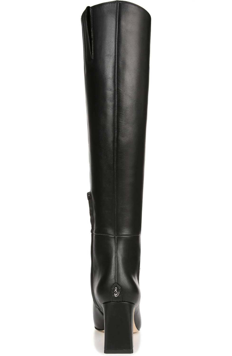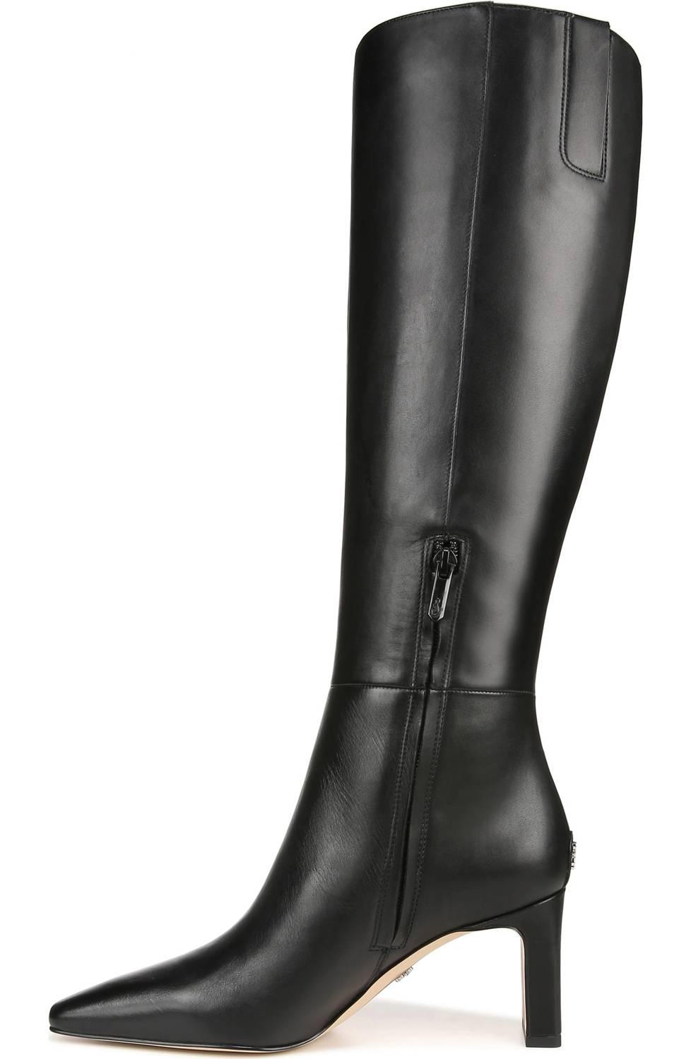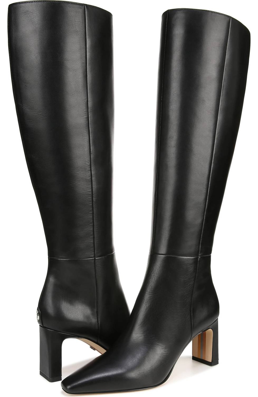 These stylish over the knee boots will look great with denim, dresses or skirts. You can't go wrong! Elevate your wardrobe with the Women's Sylvia Knee High Boots by Sam Edelman, an embodiment of bold, chic style. These over-the-knee boots feature a luxe black leather upper paired with a pointed toe and a 2.8-inch block heel, providing just the right lift for a sleek silhouette. A full zipper closure ensures easy wear, while the 15.7-inch boot shaft and 14.1-inch calf circumference offer an elegant fit. Crafted from leather and synthetic materials with a synthetic lining and durable outsole, these boots promise both style and resilience for the fall season.