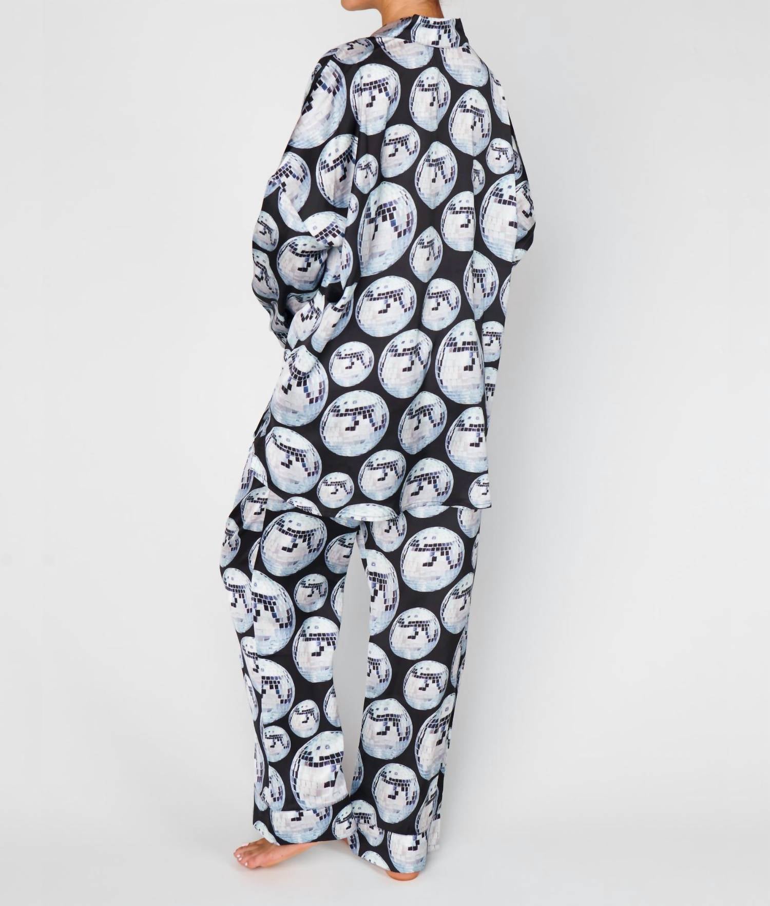 The perfect piece to lounge in, sleep in, and cook breakfast in. Elevate your loungewear with the Overslept Pajama Set by Show Me Your Mumu, adorned in a vibrant Disco Ball Silky print. Featuring long sleeves and a classic collar, these pajamas promise the ultimate comfort with their silky polyester material. The set includes a button closure top and pants equipped with a drawstring and elastic waistband for a customizable fit. Perfect for a cozy housewarming in a nostalgic 90s fashion style.