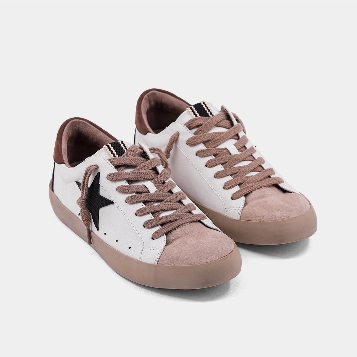 When fashion and function come together seamlessly. Elevate your style with the Women's Pamela Sneakers by Shu Shop, your go-to footwear for both comfort and versatility. These sneakers feature a chic combination of white and brown, crafted entirely from high-quality vegan leather. Designed with a round toe and flat heel measuring 1" or under, they fit true to size, making them perfect for daily wear or special occasions like church.