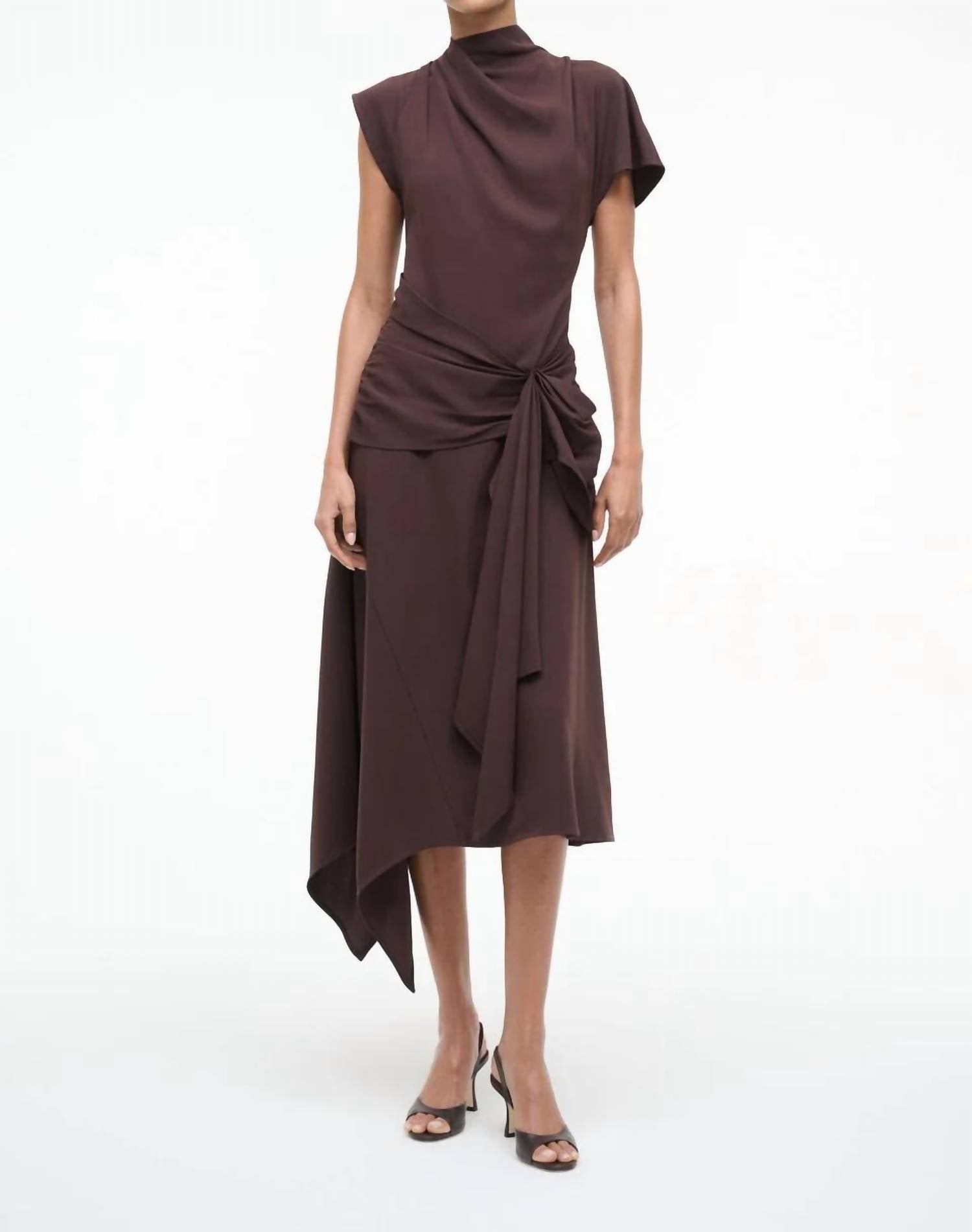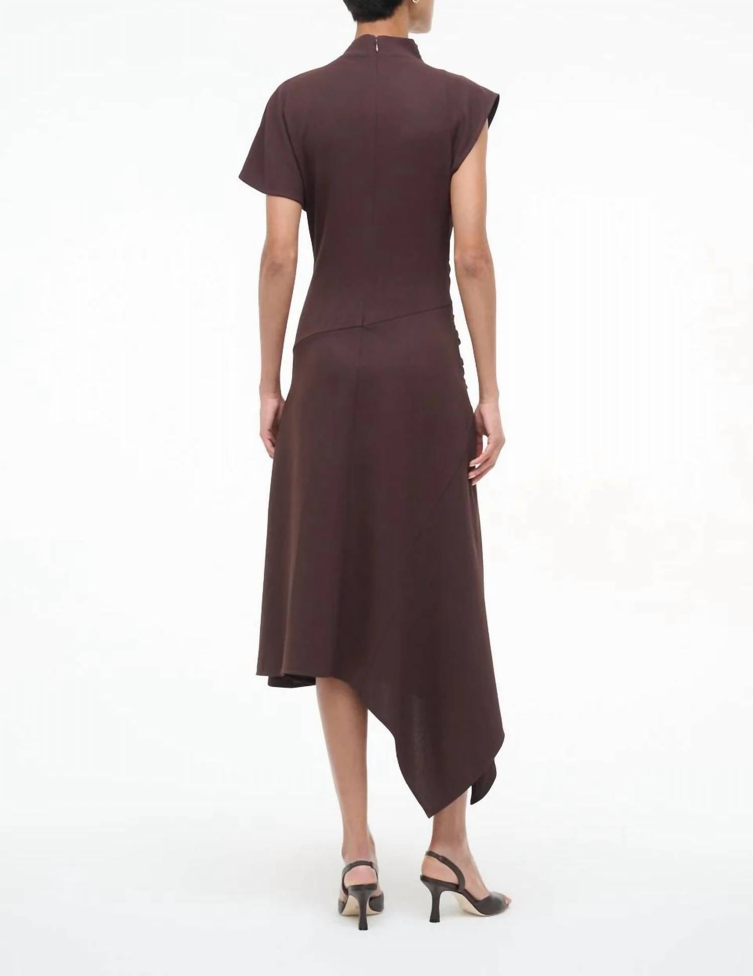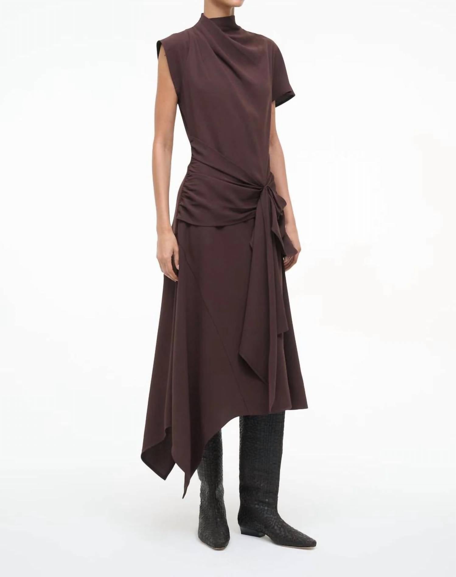 Show off just the right amount of skin in this adorable assymetrical dress. A draped asymmetrical dress featuring a handkerchief hem, the Davina is the perfect day-to-night transition style for the season. Featured in easy triacetate crepe