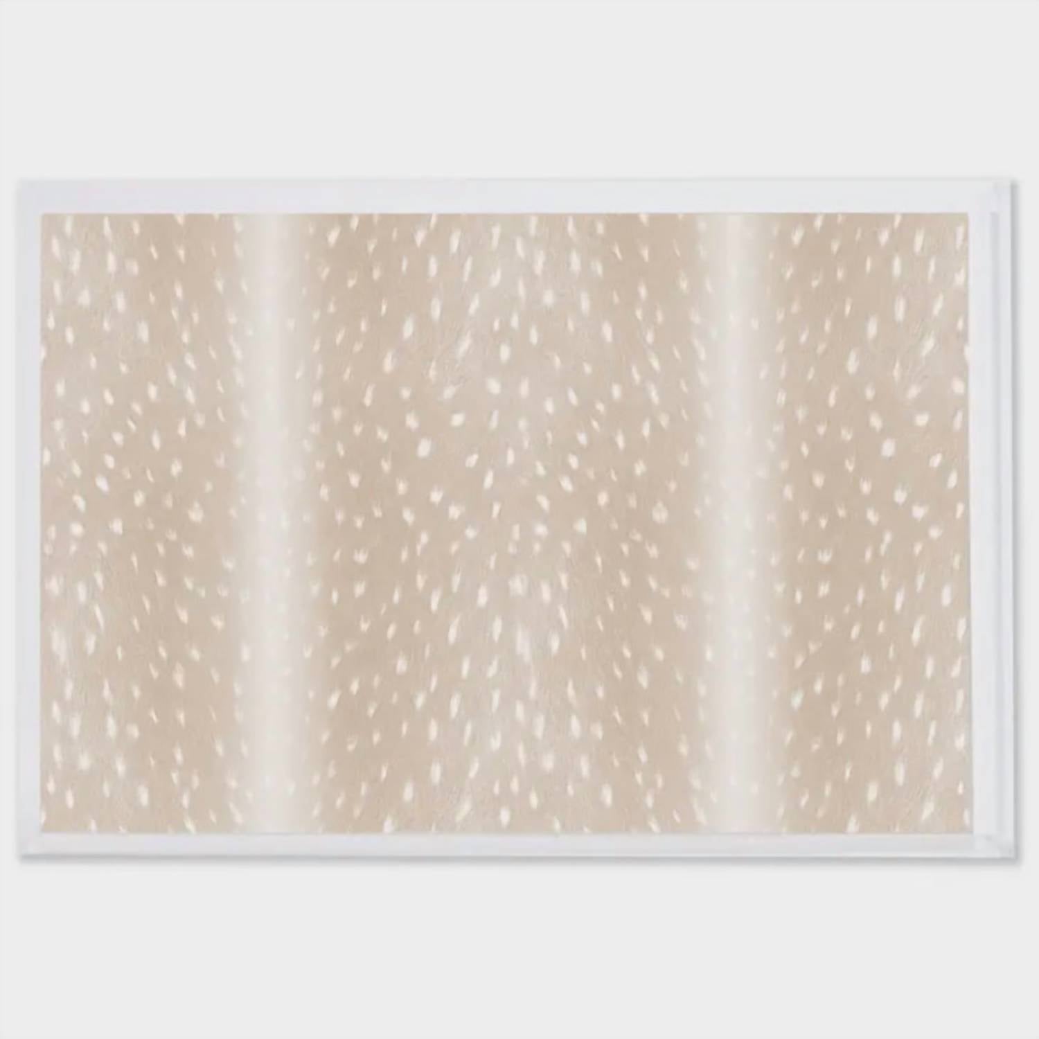 Introducing the Small Tray by Tart By Taylor, a charming addition to your serveware collection in a sophisticated fawn hue. Crafted with care, this piece is handmade from durable acrylic, measuring 6.5 inches long, 9.5 inches wide, and 1.5 inches high. Proudly made in Dallas, Texas, it is both stylish and functional. To maintain its beauty, simply use a soft damp cloth to clean and keep it indoors.