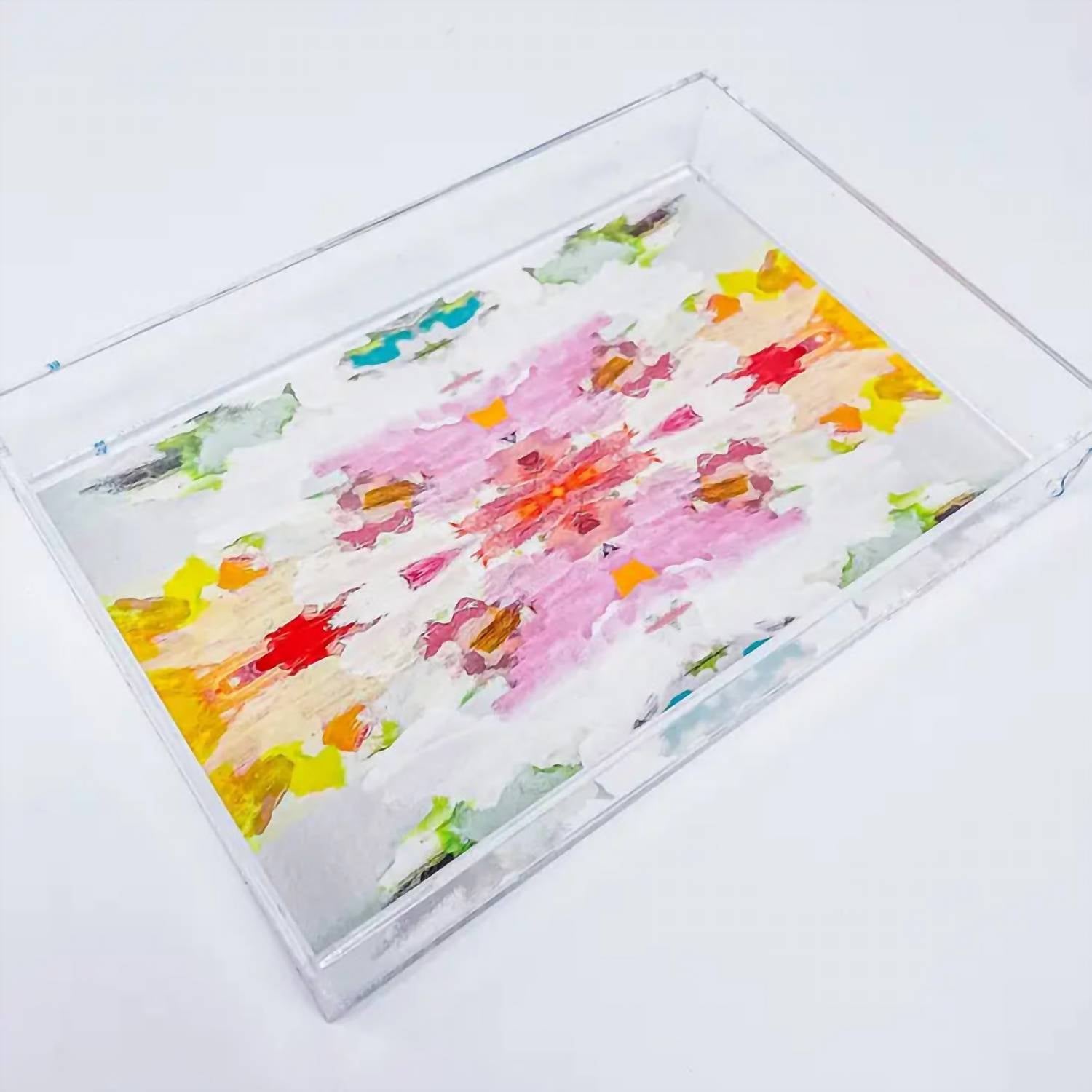 Introducing the Acrylic Small Tray by Tart By Taylor, a versatile piece for any space adorned with Laura Park Designs' Giverny artwork. Sized at 6.5" L x 9.5" W x 1.5" H, this tray is crafted from durable acrylic. Handmade with love in Dallas, Texas, it combines artistry with practicality. Care is simple—just use a soft damp cloth to clean and keep it indoors.