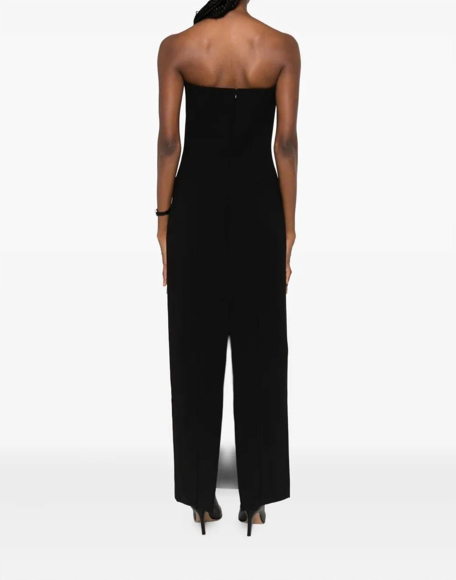 A strapless dress so versatile you can dress it up with heels or wedges, or give off a more casual vibe with flats. The Strapless Pocket Dress by TOTEME is a sophisticated choice for evening events, tailored from 100% recycled polyester with a minimalist solid black design. This imported, strapless number boasts a form-fitting, darted construction and features functional pockets, while its shift silhouette is completed with a practical zip closure at the back and a stylish slit. Designed with an off-the-shoulder neckline for summer occasions, this dress is easy to care for with machine wash instructions. Embrace effortless elegance with this sleek addition to your wardrobe.