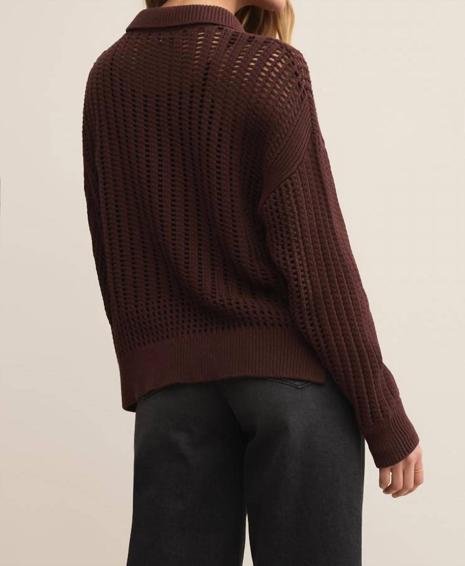 You'll be reaching for this comfy and classic v-neck sweater all season long. Elevate your wardrobe with the Looking Glass Polo Sweater by Z Supply, a stylish blend of classic and modern aesthetics. Crafted from 100% cotton Sienna yarns, this cozy midweight sweater ensures breathability and comfort with its textured open-stitch pattern. Featuring long sleeves and a collared neckline, it is finished with a button-front closure adorned with tortoise buttons for a refined touch. Care instructions include hand washing in cold, reshaping, and laying flat to dry, or opting for dry cleaning. This versatile sweater, ideal for the minimalist trend, is a perfect choice for vacation style in the fall season.