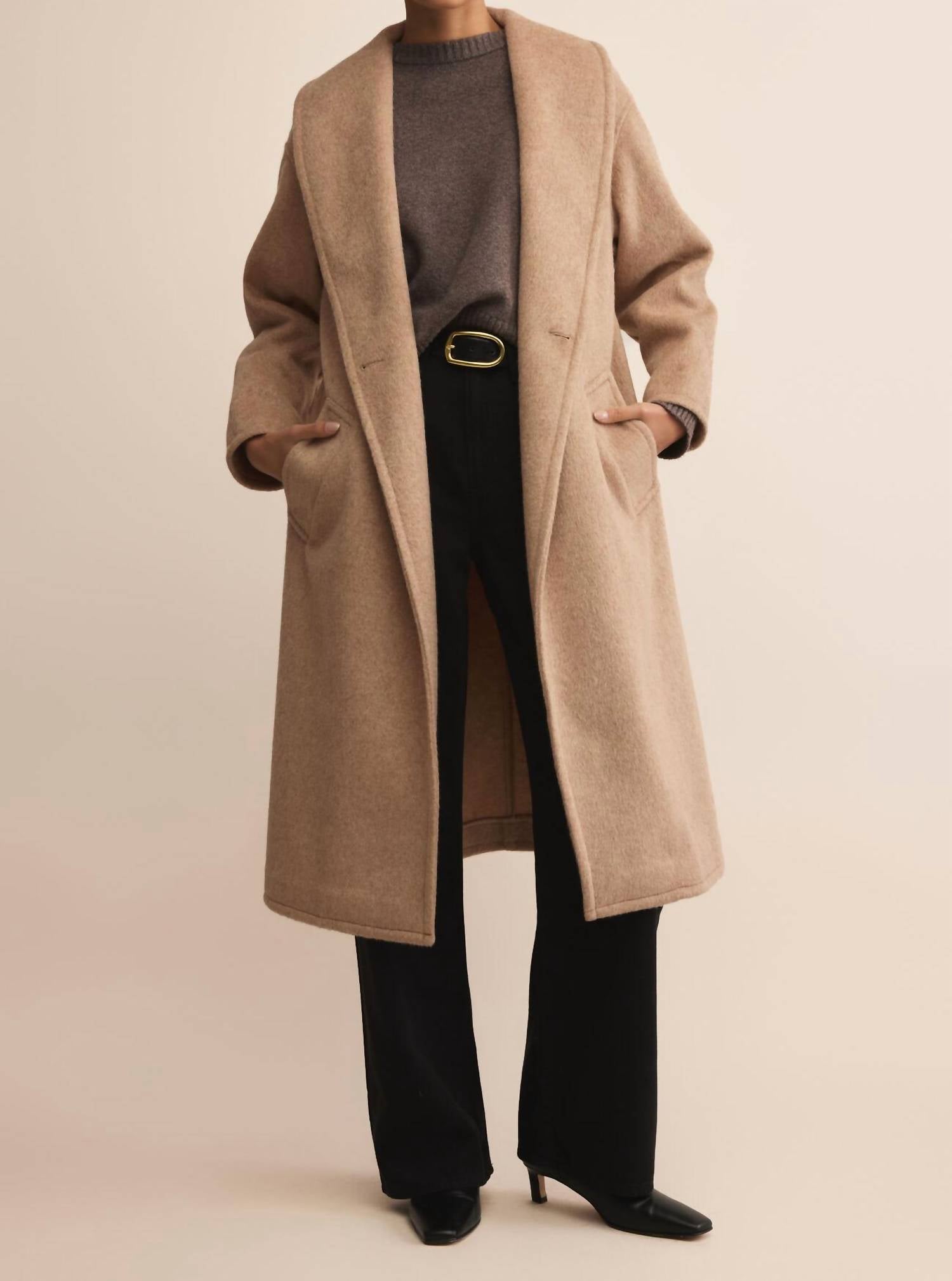 Classicly chic, this is the kind of trench coat that never goes out of style. Elevate your winter wardrobe with the Signature Long Sleeve Coat by Z Supply, crafted for the discerning fashionista. Featuring a classic camel color, this solid trench showcases a long sleeve design and button closure for a sleek minimalist look. Composition: 82% Polyester, 10% Wool, 8% Viscose. Care: Dry clean only. Perfect for evening events and stylish New Year’s Eve celebrations.