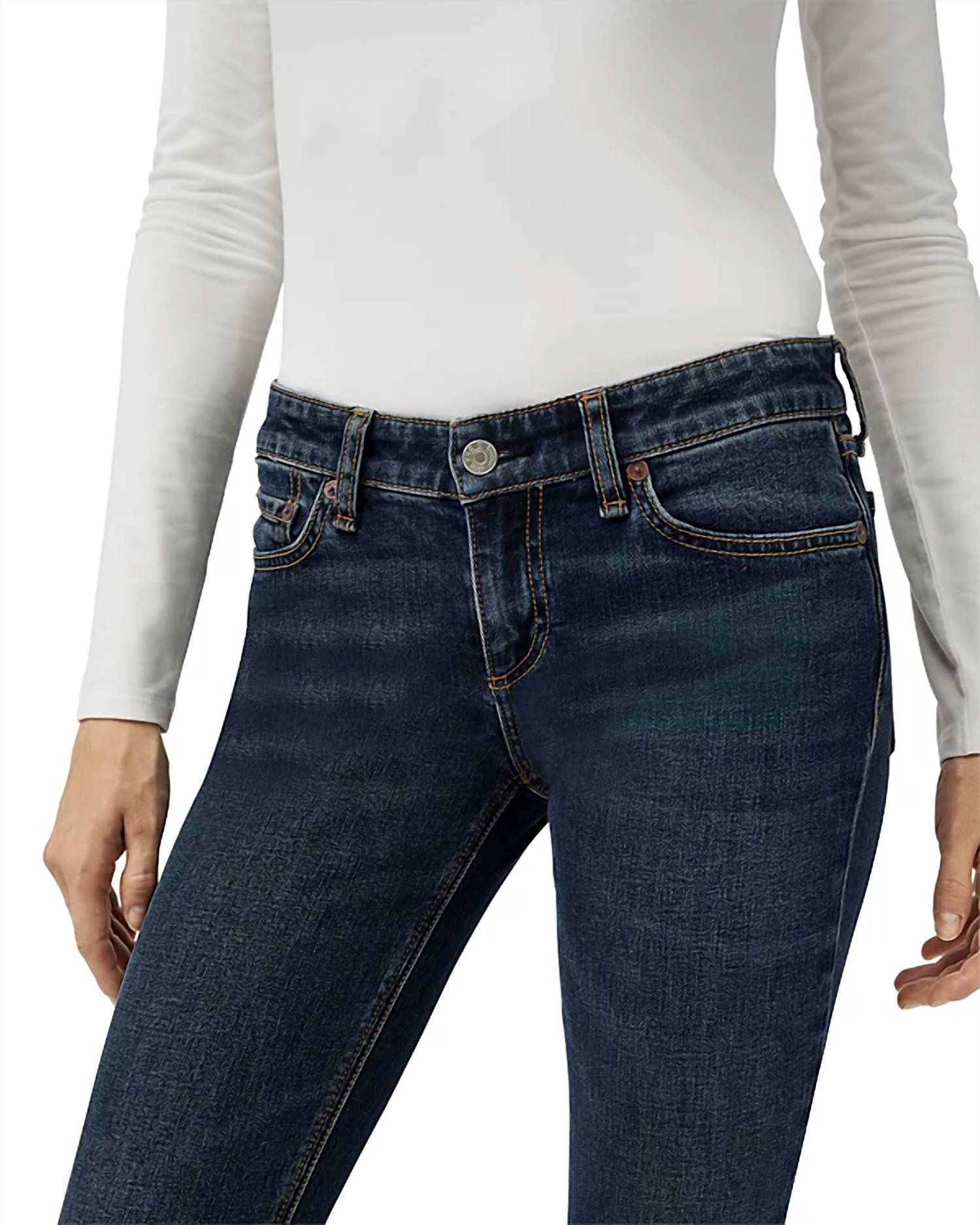 Discover the Kinsley Jean by Rag & Bone, where style meets comfort in a classic flared leg silhouette. Crafted from premium 99% cotton and 1% LYCRA® spandex denim, these jeans sit at a mid-rise of 8.5" for a flattering fit, with a long inseam of 34". The chelsea-colored jeans feature a button closure and a five-pocket silhouette with stylish contrast topstitching. Designed for a true-to-size fit, these versatile jeans highlight silver-tone logo hardware and a modern whiskered wash, ensuring a chic, effortless look for any occasion.