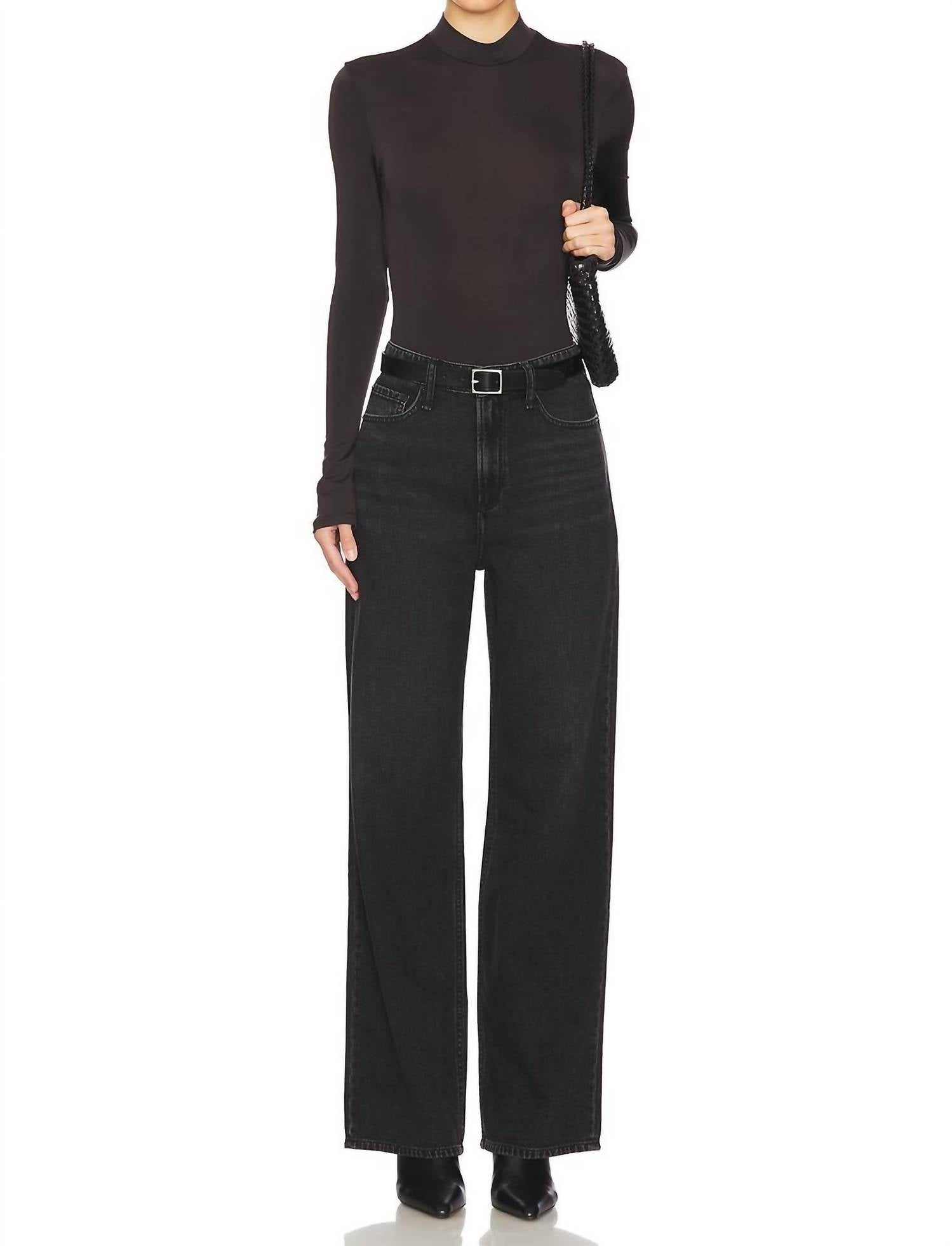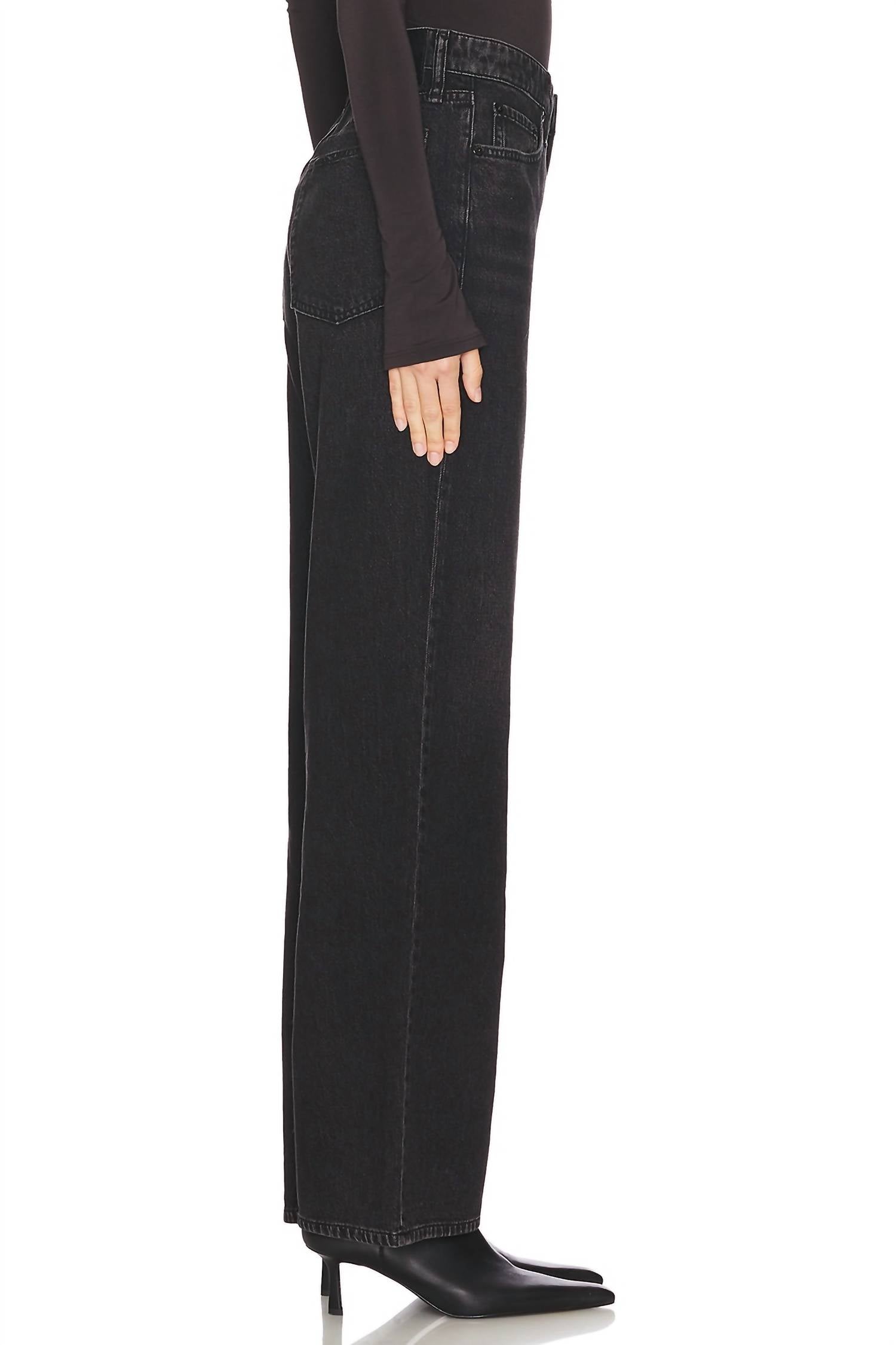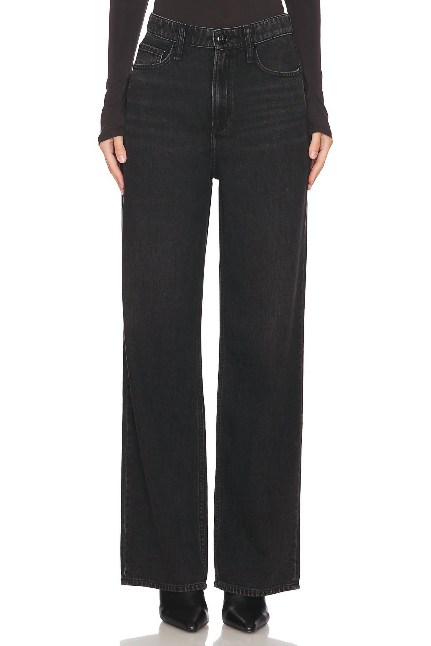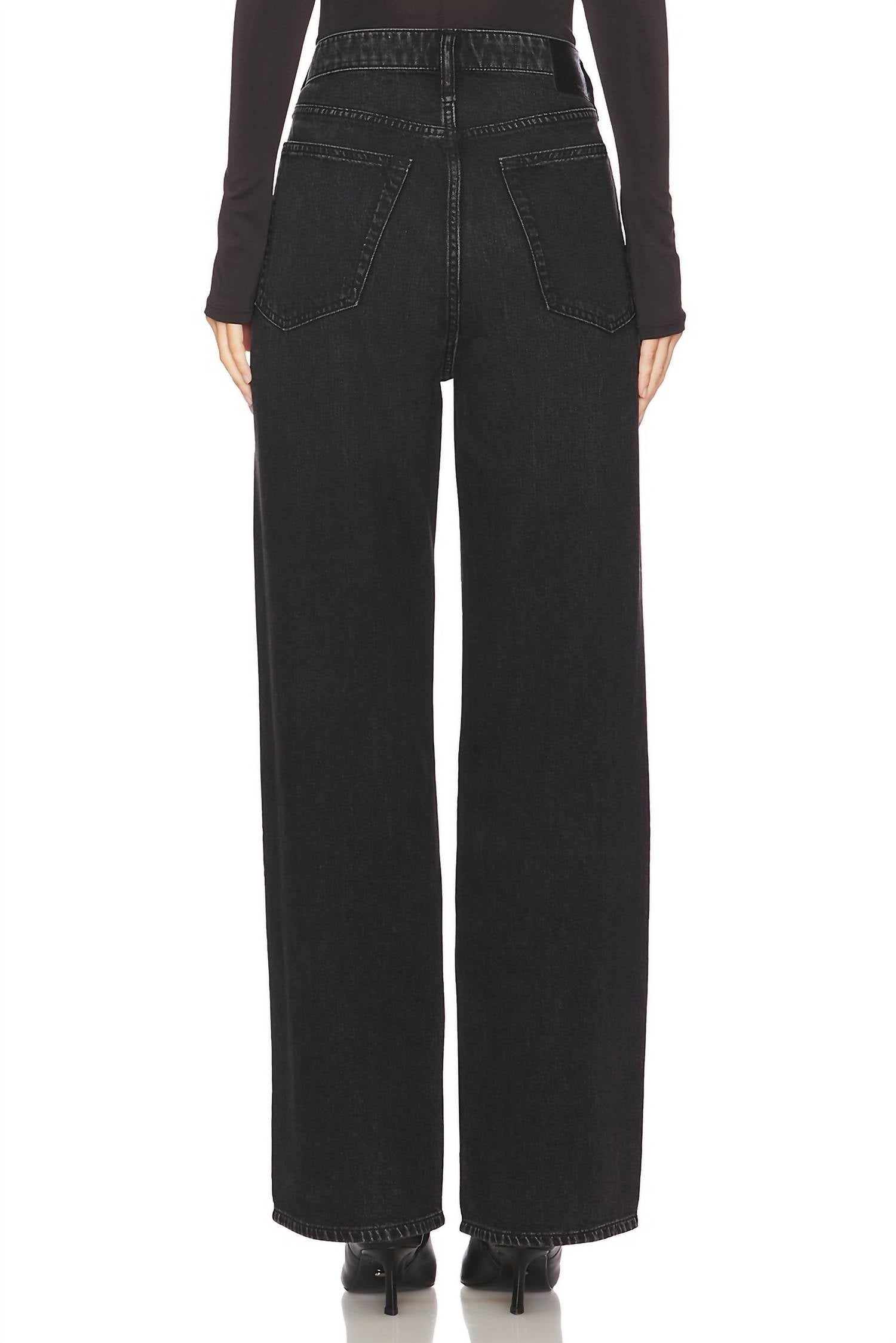 Just as cute as they are comfortable. Discover the Featherweight Logan Wide Leg Jeans by Rag & Bone, where style meets comfort in Jet Black. Crafted from a blend of 64% cotton and 36% tencel, these jeans are made in China and offer a machine washable convenience. With a zip fly and button closure, the design features a 5-pocket layout and lightweight denim that's 20" at the knee and waist, perfect for fall fashion. The subtle bleached lines and fading add a touch of character, completing this solid, wide-leg silhouette.