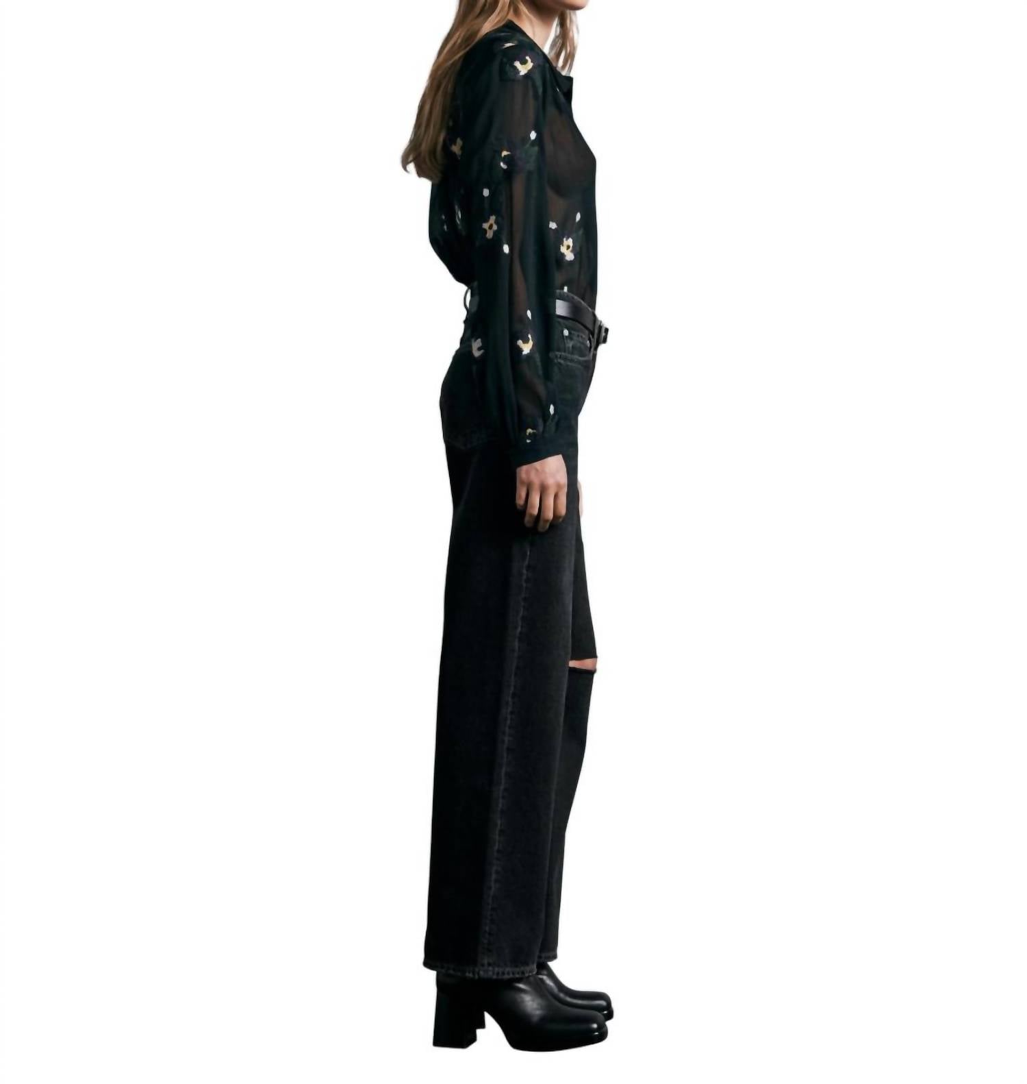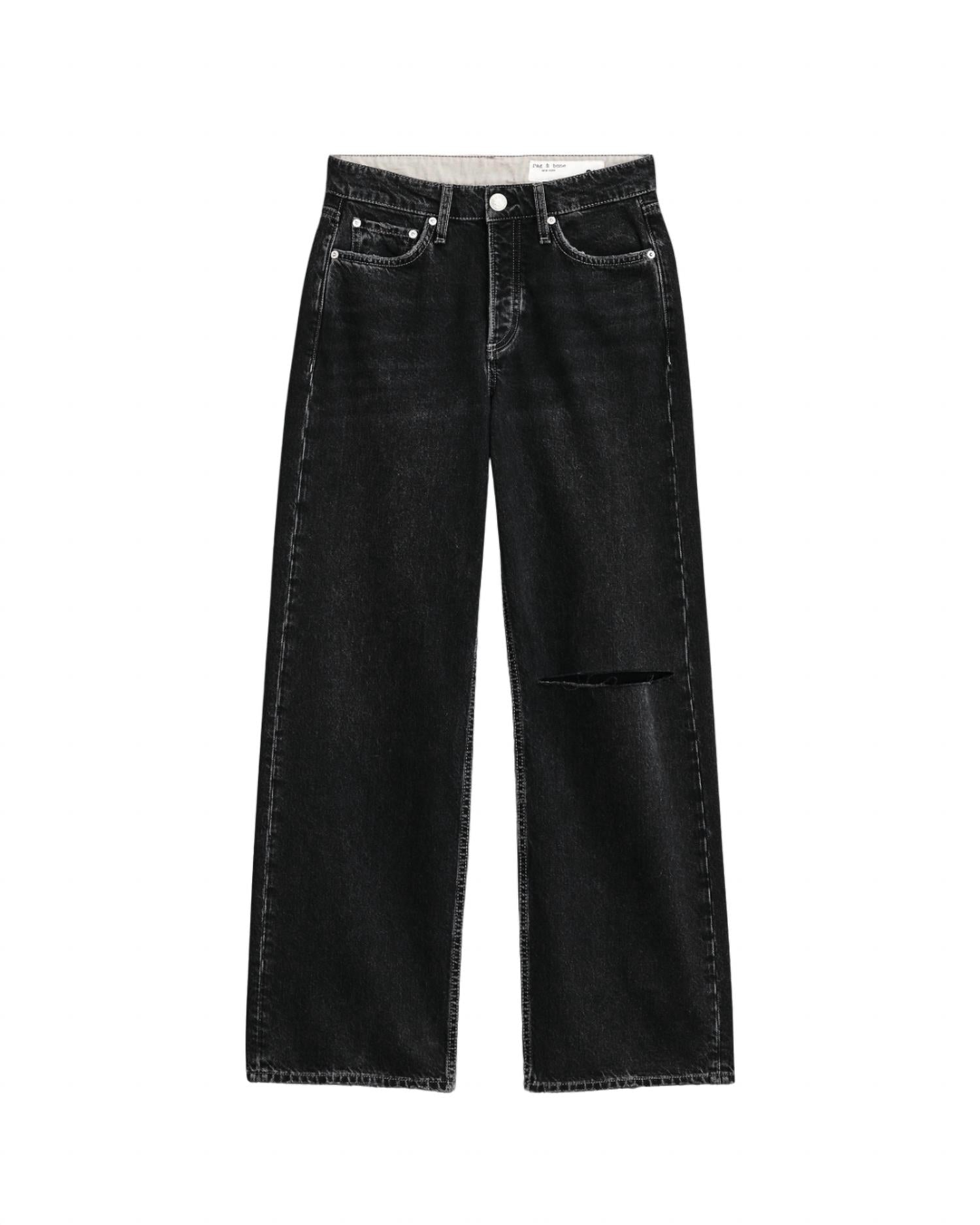 Wide leg, mid-rise jean made from a lightweight, sustainable denim. With a roomy cut through the hip and thigh. Mid-rise, loose fit wide leg. Material: 100% Cotton. Machine wash cold. True to size. Model is 5'10.5" wearing a size 25. Size 26: 11 5/8" rise, 31.5" inseam, 20" leg opening.
