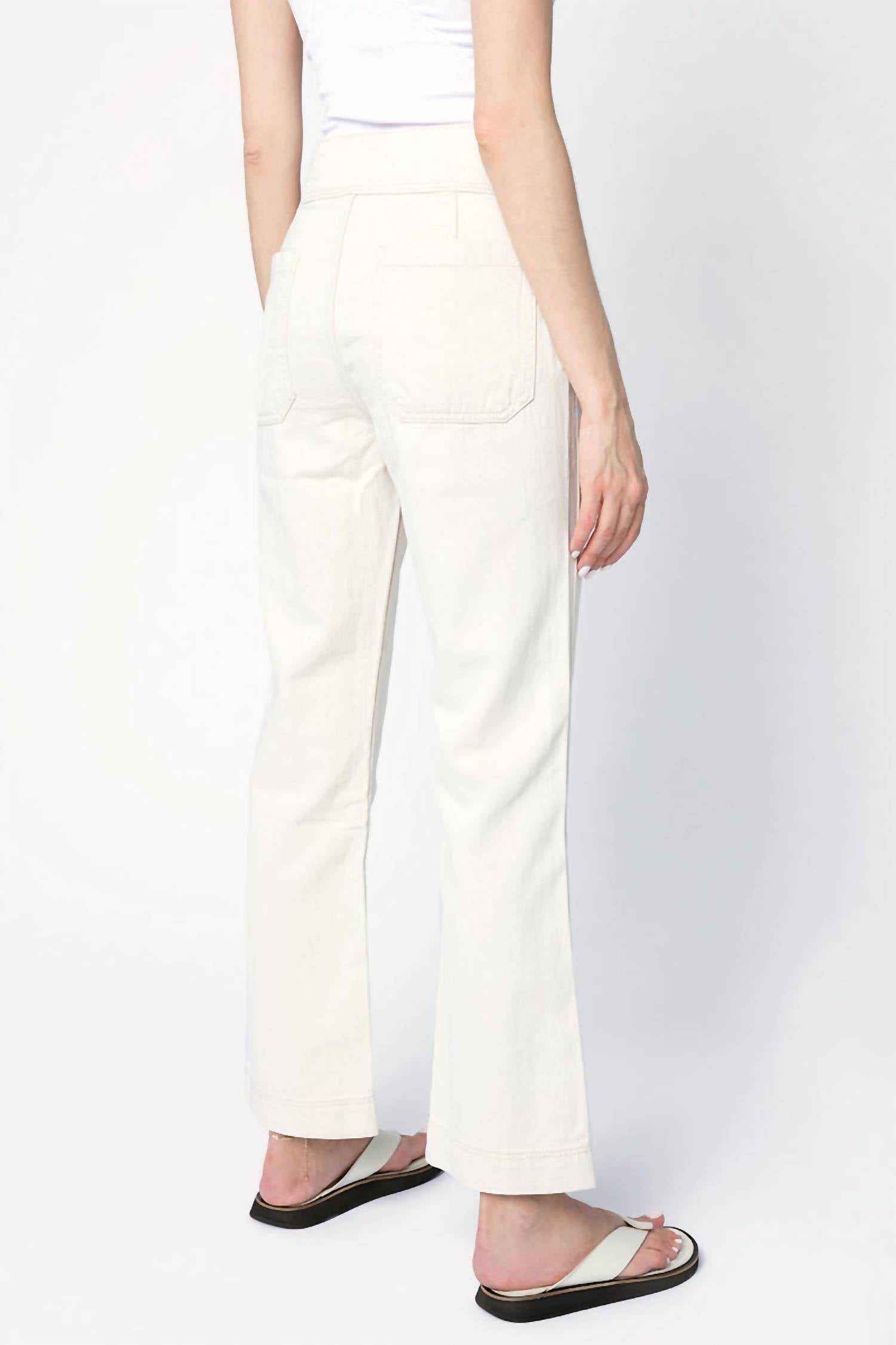 A flattering silhouette that's suprisingly versatile. Meet the Rag & Bone Naval Crop Jean in a solid natural hue, a must-have for your spring streetwear collection. These women's jeans offer a high-rise, relaxed fit with a flared leg, perfect for any stylish occasion, including anniversaries. Designed with functional pockets, a convenient button closure, and made with easy-care instructions, simply machine wash and tumble dry. Elevate your wide-leg denim wardrobe with this versatile piece.