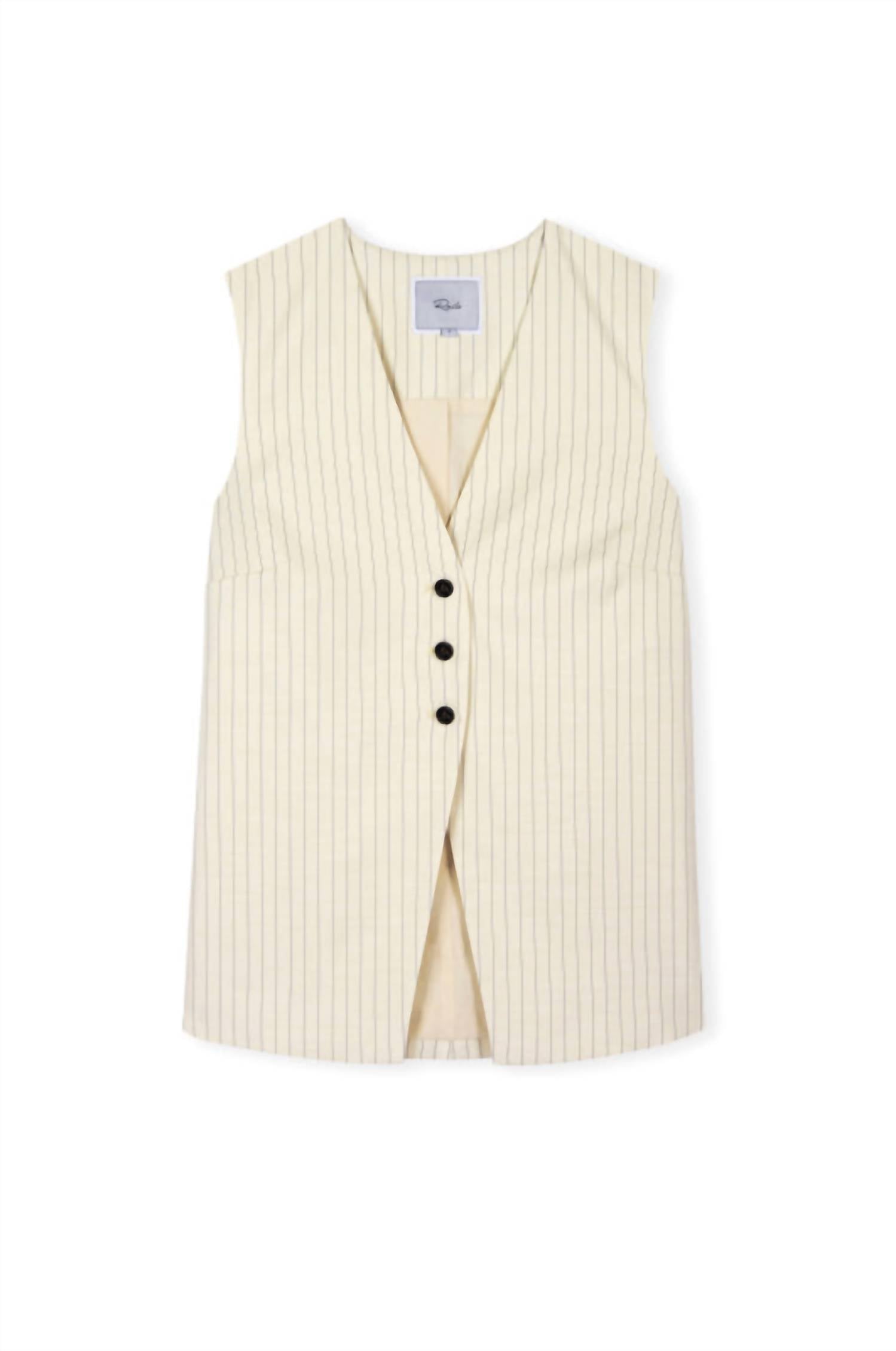 That extra layering piece you didn't know you needed! Elevate your fall wardrobe with the Rails Mylah V-neck Vest in Birch Pinstripe, a chic nod to quiet luxury. This sleeveless vest, crafted from 66% Polyester, 32% Viscose, and 2% Spandex, measures 27.5 inches in length and is perfect for travel occasions. Made with a button closure, this imported piece is easy to care for with machine wash cold and tumble dry instructions, allowing for effortless maintenance. Whether layered or worn solo, its tailored silhouette and contrast buttons make it a versatile addition to any fashion-forward ensemble.