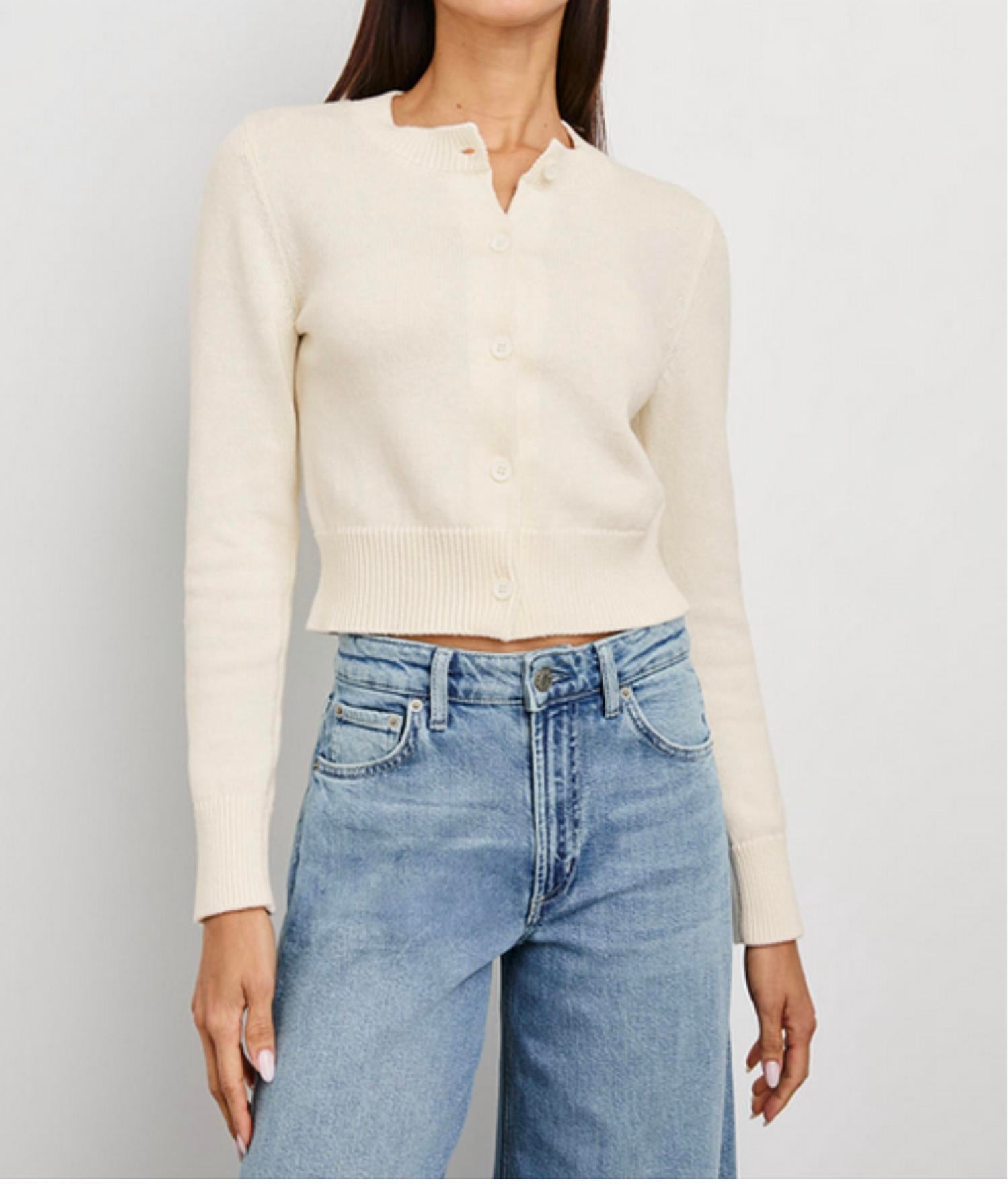Throw this adorable cardigan over any cami or tank top. True indulgence feels like the Norah, a cotton-cashmere blend cardigan in a traditional lady jacket shape. Complete with matching buttons and ribbed trims, this is a luxury staple for year-round wear.