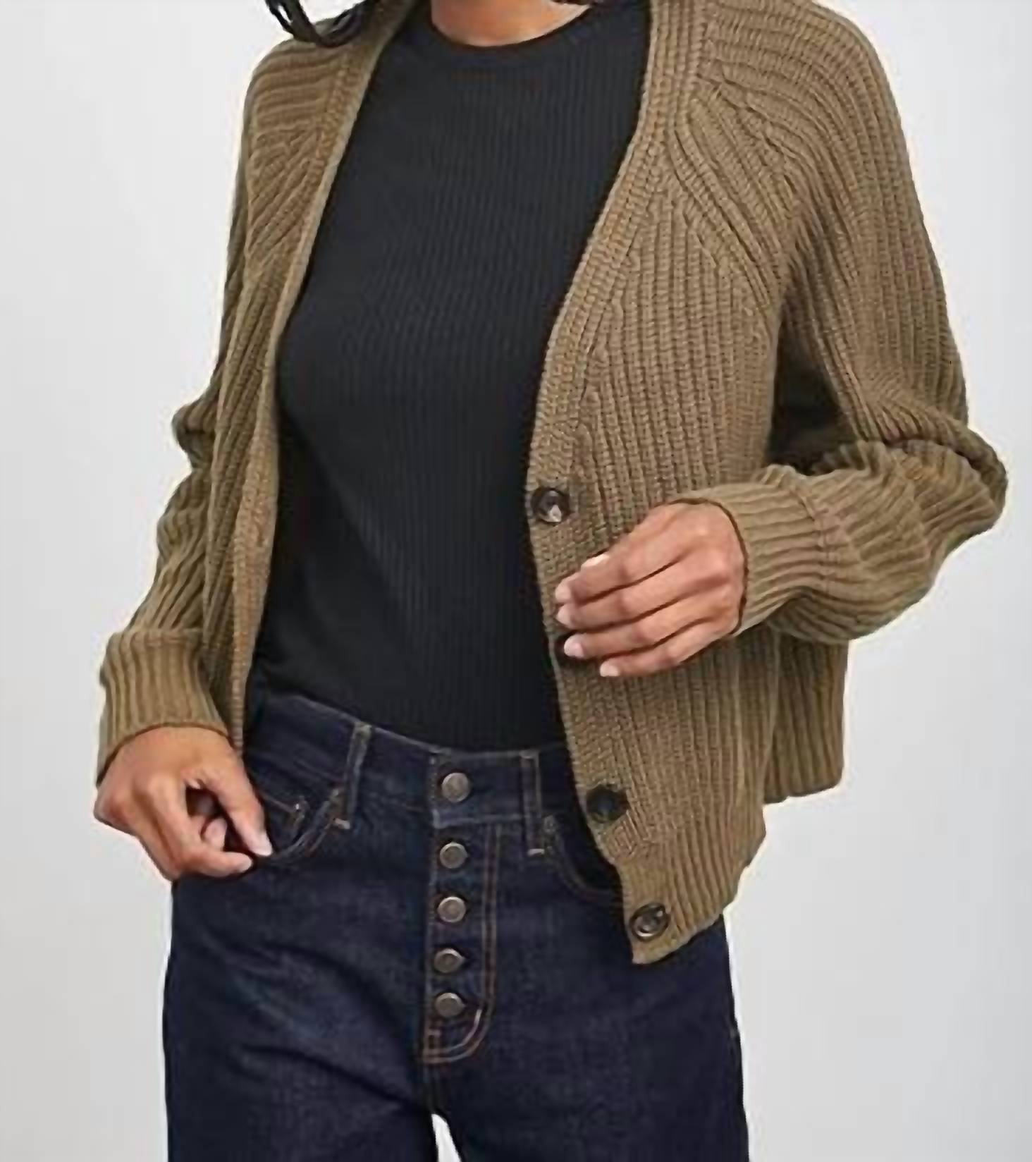 Throw this adorable cardigan over any cami or tank top. Introducing the Josie Cardigan Sweater by Rails, a perfect addition to your fall wardrobe in a stylish olive hue. This women's cardigan features long sleeves and a textured pattern for a vintage flair, ideal for vacation wear. Crafted from a soft cotton blend with a V-neck design, it offers comfort and versatility. Closure: Button closure. Care: Dry clean only.