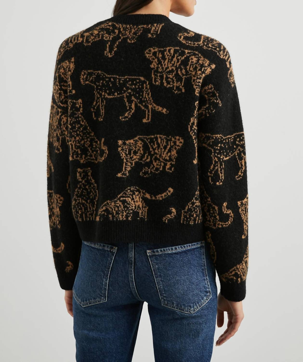 Stay warm and stylish in this versatile and effortlessly cool knitwear staple. Wear it alone or layered, it's the perfect sweater for the season and you'll wish you had it in every color. Introducing the Perci Sweater by Rails, a chic addition to your winter wardrobe in the striking 'Camel Wild Cats' print. This long sleeve sweater is crafted from a luxurious 32% Wool | 32% Alpaca | 30% Nylon | 6% Spandex blend, offering both comfort and style. With a garment length of 21.5 inches, it features a classic crewneck and a pull-on closure for easy wear. Care instructions recommend dry cleaning to maintain its pristine condition.