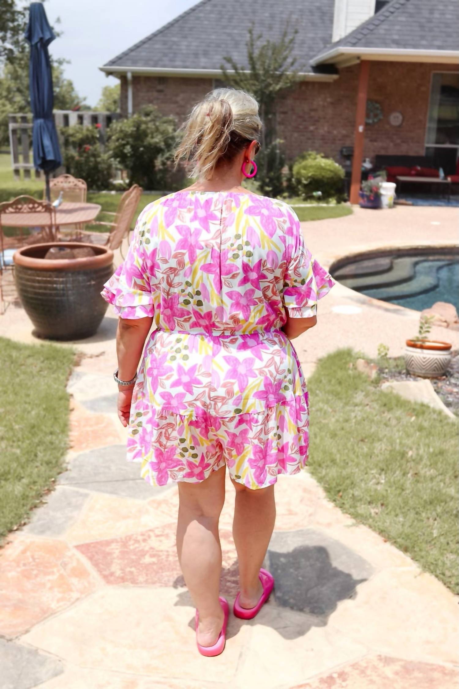 White Birch - Half-sleeve Floral Print Woven Romper