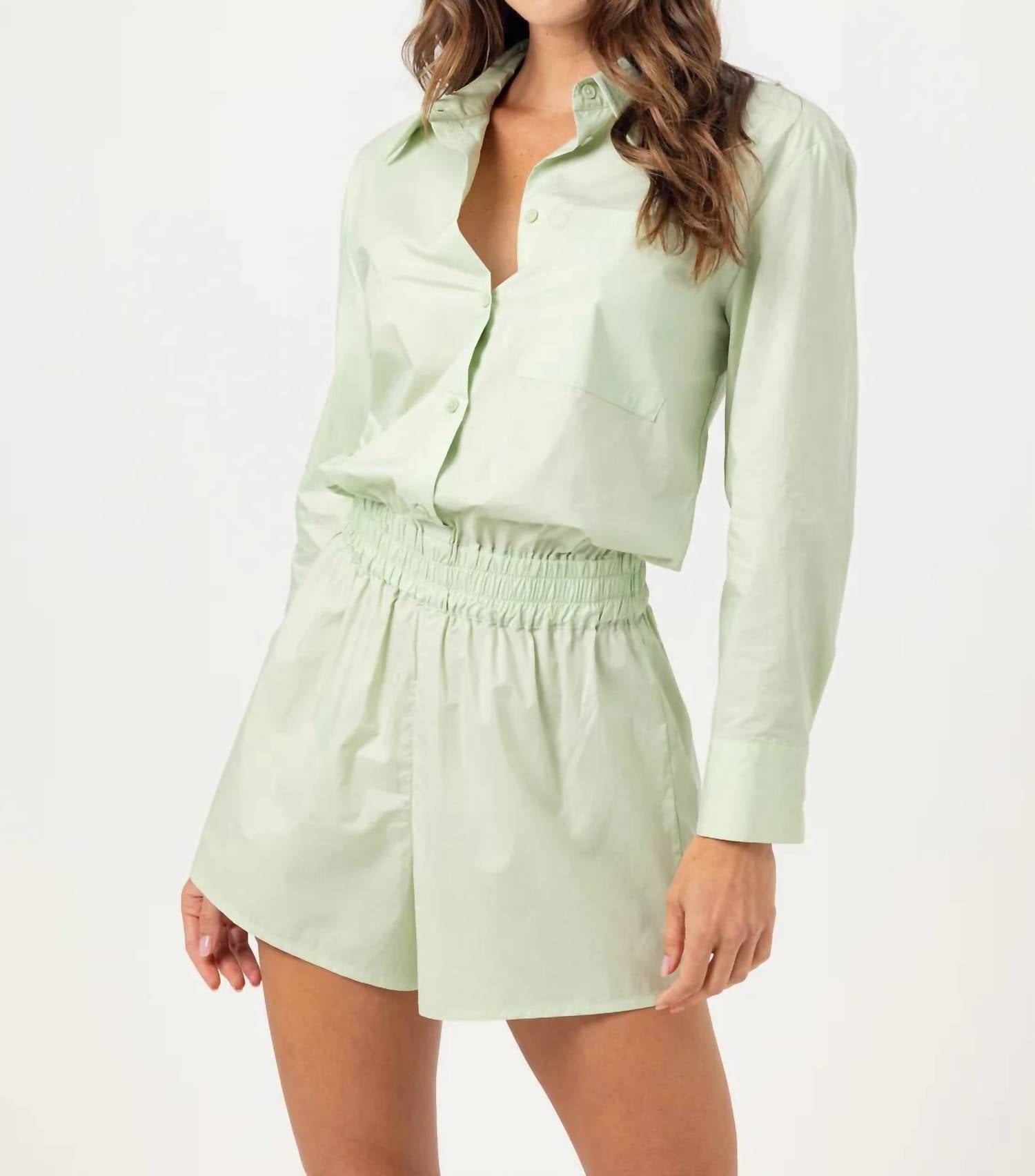It doesn't take much for this one piece to look effortlessly cool. Add some statement jewelry to dress it up, or throw on some sneakers for a more casual vibe. Chic romper features long sleeves. Comfortable relaxed fit with elastic shorts. Crafted from 100% Cotton. Designed with a collared neckline and a natural waistband for a flattering silhouette. Button closure down the front. Machine wash cold with like colors, tumble dry low.