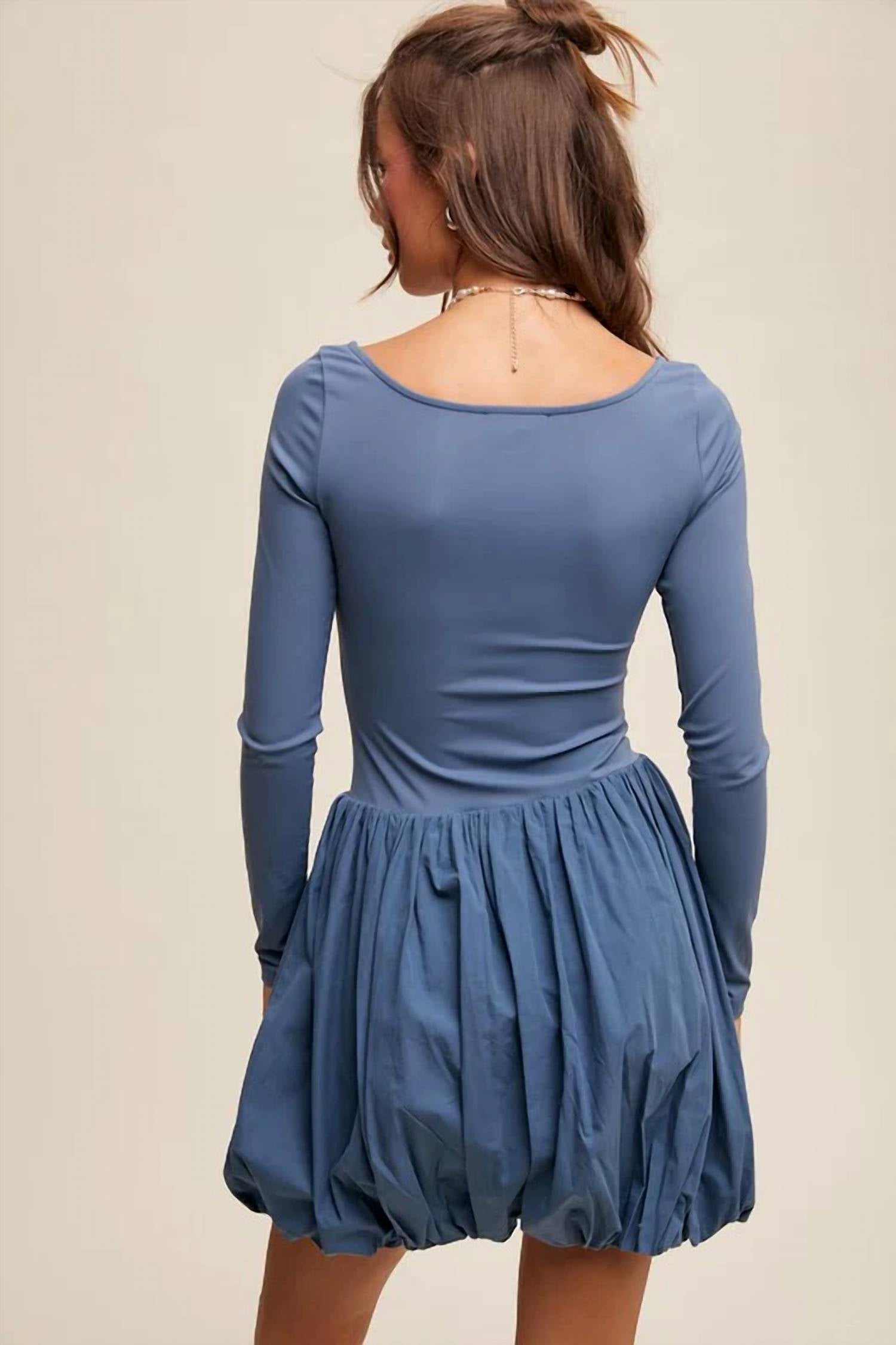 Throw it on and go! Features a fitted bodice with a square neckline and long sleeves, creating a sleek, modern look. The voluminous bubble skirt adds a playful contrast, while the built-in shorts lining ensures coverage and ease of movement. Made from a soft, stretchy blend of 76% nylon and 24% spandex, it offers a snug yet flexible fit.
