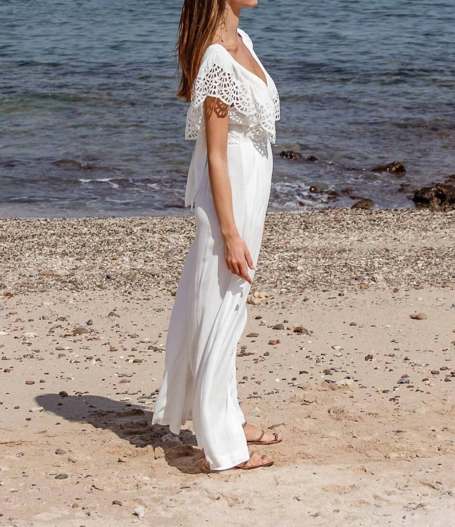 Mid-weight, non-stretchy fabric. Broderie Anglaise ruffles around sleeve openings. Pintuck detail at waist. Semi open back and tie strings for adjustable fit. Elasticated upper edge at the back of trousers, slip in. Gentle machine wash.