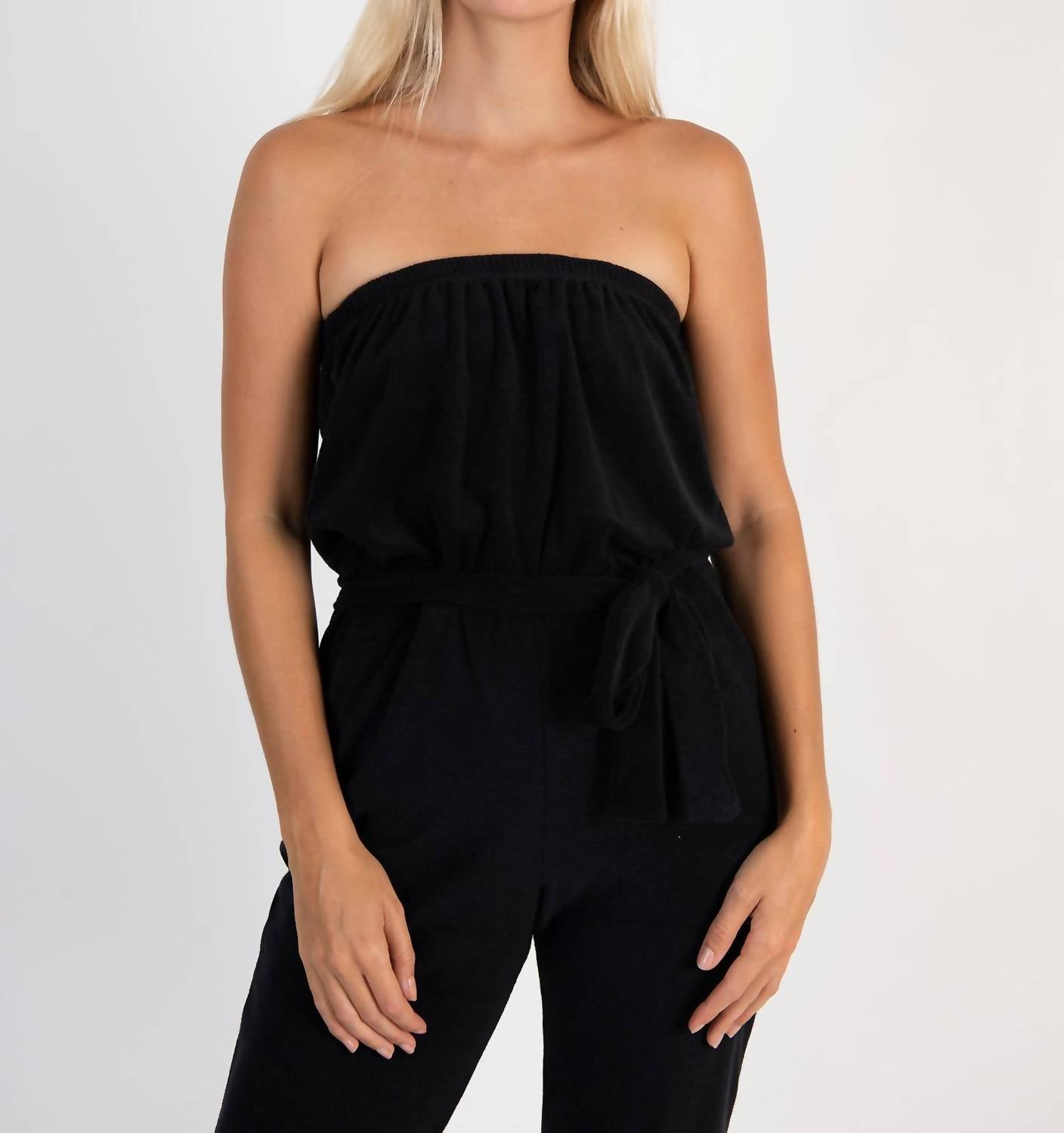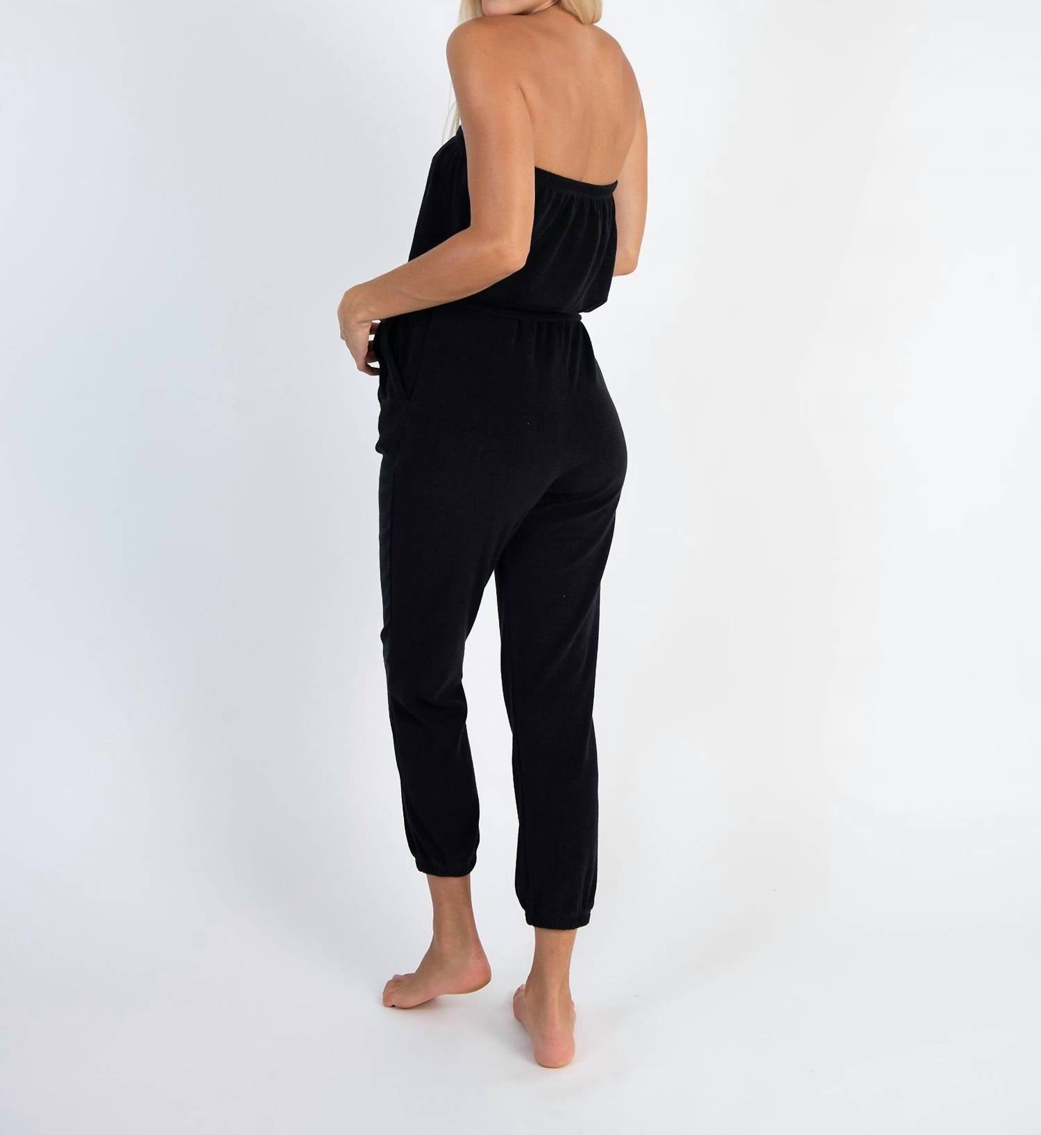 The perfect outfit choice when you you need something quick to throw on and still want to look efforlessly cool. Meet the LVHR Camilla Jumpsuit, your go-to piece in timeless black with a minimalist vibe. Designed with a flattering strapless style, it features tapered legs and elastic cuffs, waist, and neckline for a perfect fit. Made from a sustainable 85% Organic Cotton and 15% Recycled Poly blend and crafted in LA, it offers front pockets and a convenient pull-on closure with a waistband sitting at the true waist with a width of 13". With a pant inseam of 25", this jumpsuit is machine washable, promising both style and ease of care.