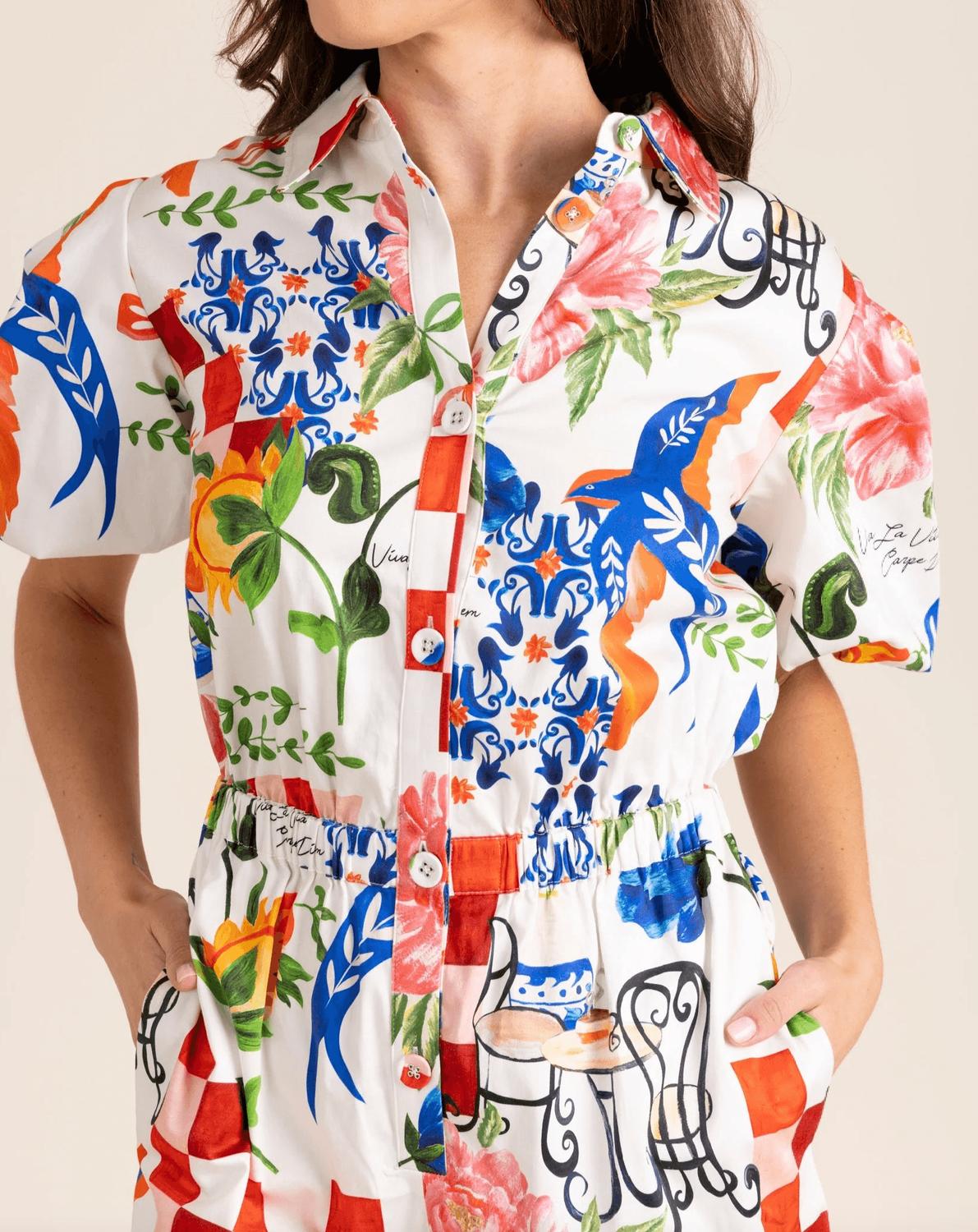 It doesn't take much for this one piece to look effortlessly cool. Add some statement jewelry to dress it up, or throw on some sneakers for a more casual vibe. Elevate your summer wardrobe with the Allie Romper by Alden Adair, a stylish outfit in captivating Amalfi blue. Crafted from cotton sateen composed of 98% cotton and 2% spandex, it ensures breathability and a hint of stretch for comfort. The romper features a button closure and a relaxed straight leg fit, equipped with practical pockets and a stretchy waistband. Care is simple: machine wash cold and tumble dry on low.