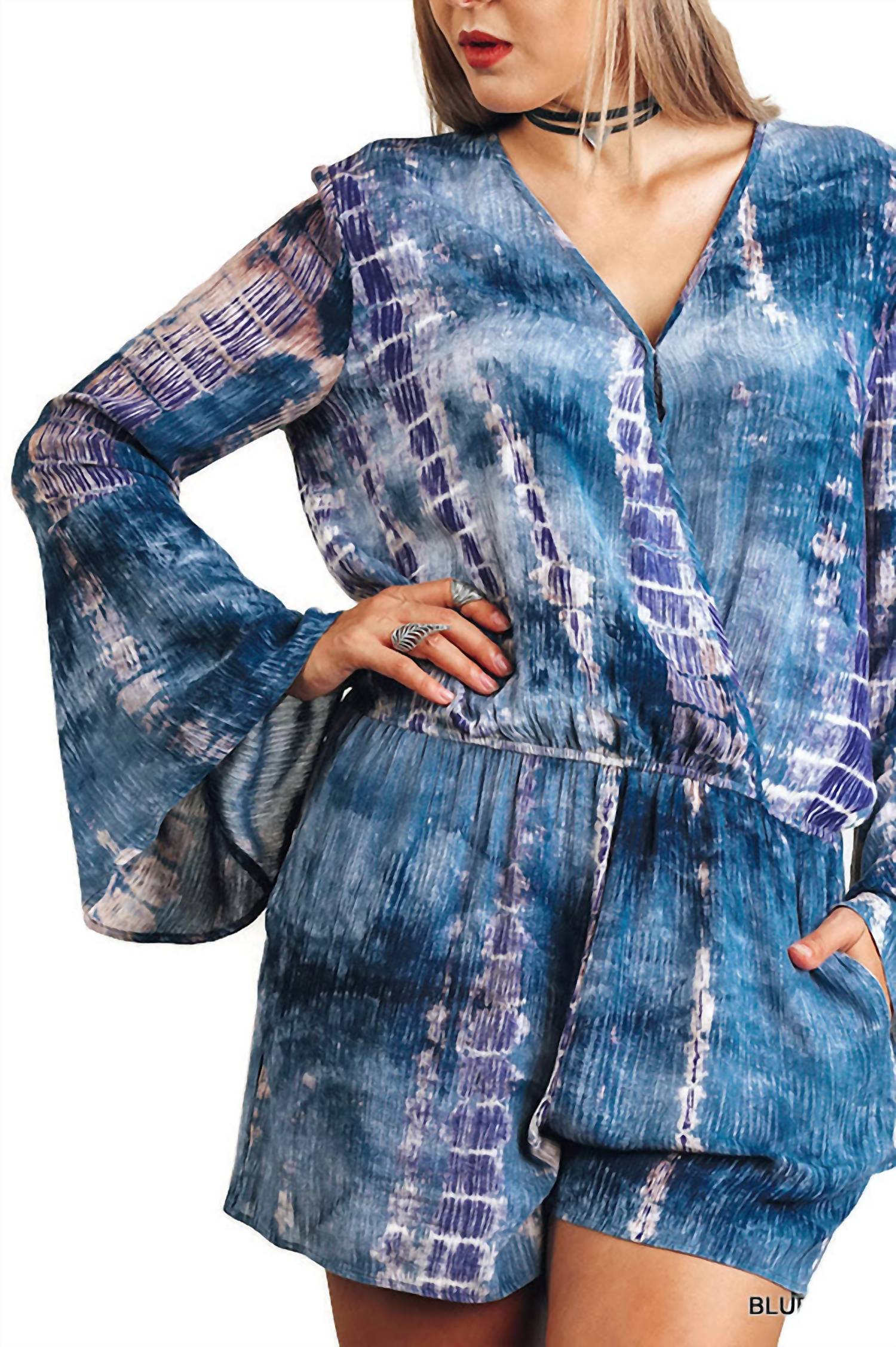 It doesn't take much for this one piece to look effortlessly cool. Add some statement jewelry to dress it up, or throw on some sneakers for a more casual vibe. Step into summer with the Tie Dye Romper by Umgee, a stylish choice for any boho-chic ensemble. Featuring elegant bell sleeves and a faux wrap V-neckline, this blue mix romper includes practical side pockets and a comfortable elastic waist. Made for plus sizes, it offers a flattering fit with lengths measuring 31 inches from shoulder to hem. Care is easy with machine washable instructions, making it perfect for festive gatherings or travel adventures.