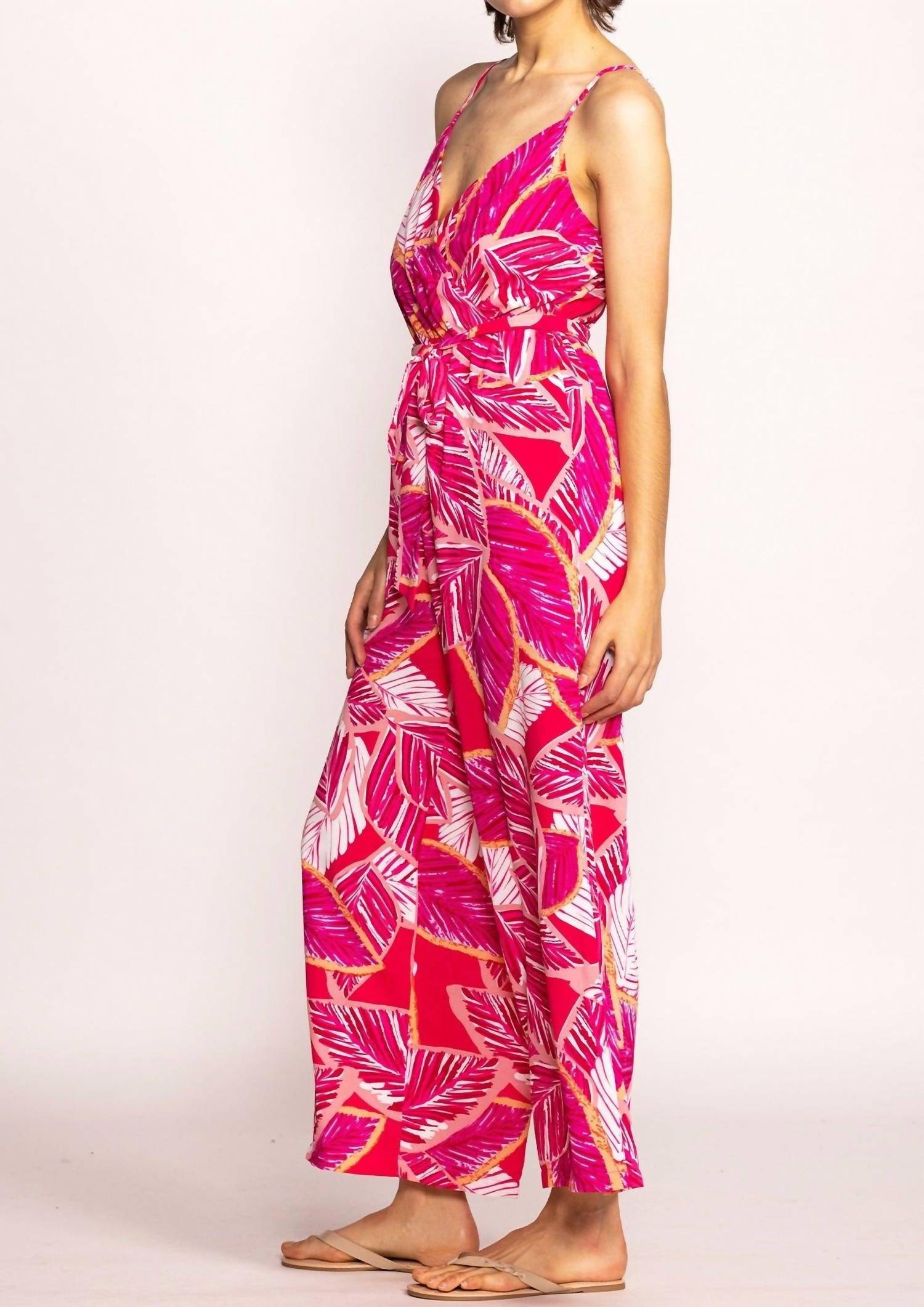 The perfect outfit choice when you you need something quick to throw on and still want to look efforlessly cool. Elevate your summer wardrobe with the Noelle Jumpsuit by Pink Martini, a chic addition perfect for holiday parties. Crafted from 100% polyester, this stunning pink piece showcases a graphic pattern that embodies boho-chic style. Designed with a classic fit and wide leg, the jumpsuit features a convenient pull-on closure.