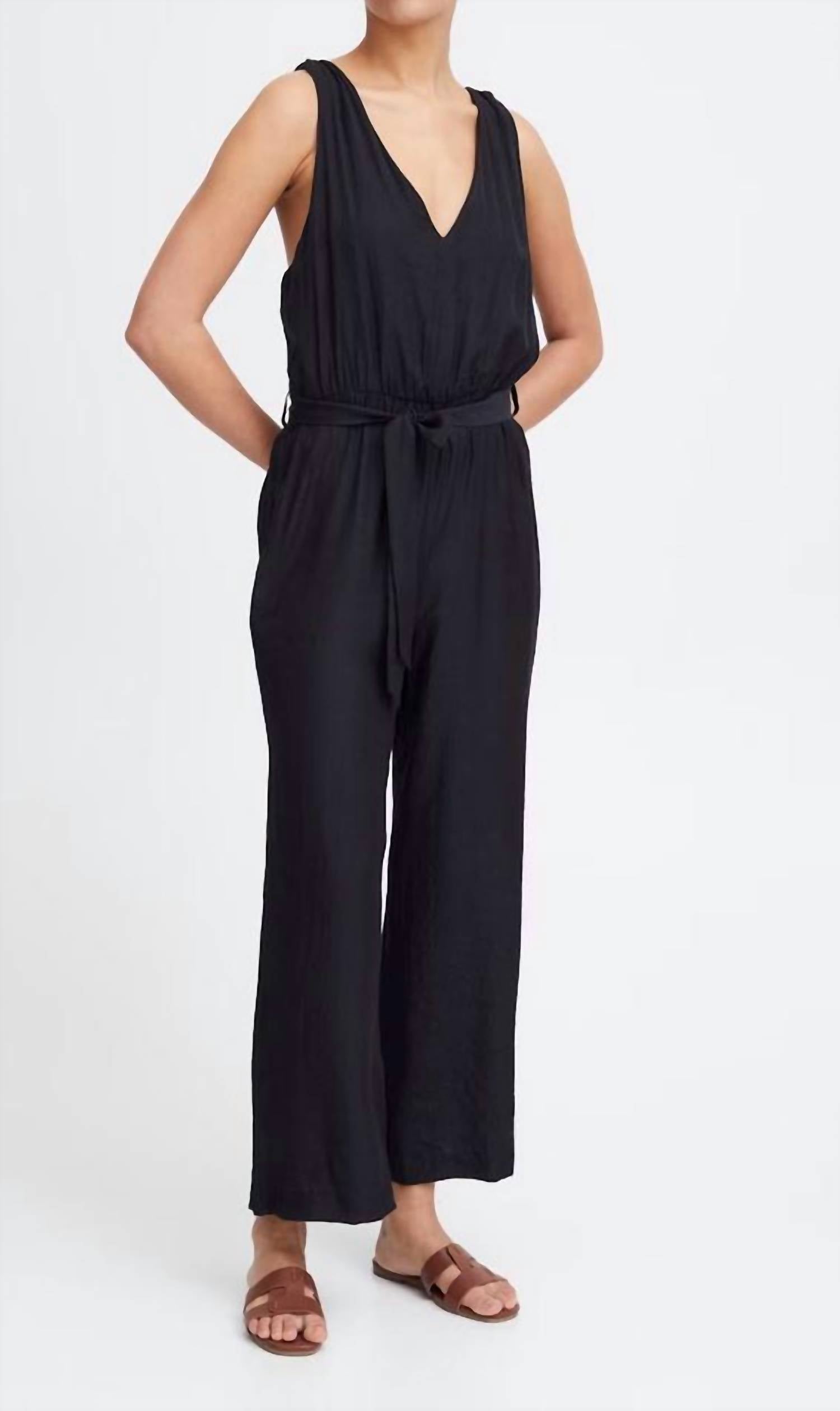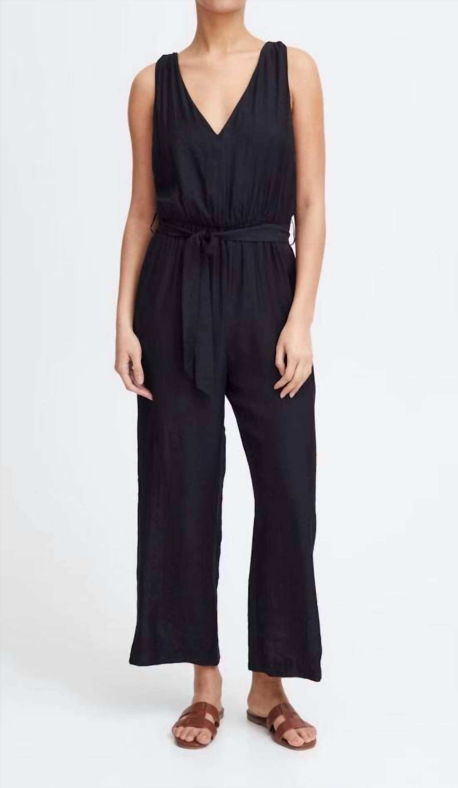 It doesn't take much for this one piece to look effortlessly cool. Add some statement jewelry to dress it up, or throw on some sneakers for a more casual vibe. Discover summer elegance with the Women's Tanessa Jumpsuit by ICHI, perfect for vacation outings. Crafted from a composition of 80% Viscose and 20% Polyamide, it features a comfortable wide leg style in a sleek monochrome black. This solid-patterned jumpsuit offers a pull-on closure for easy wear. Ideal for women seeking comfort and style, it is a versatile addition to any wardrobe.