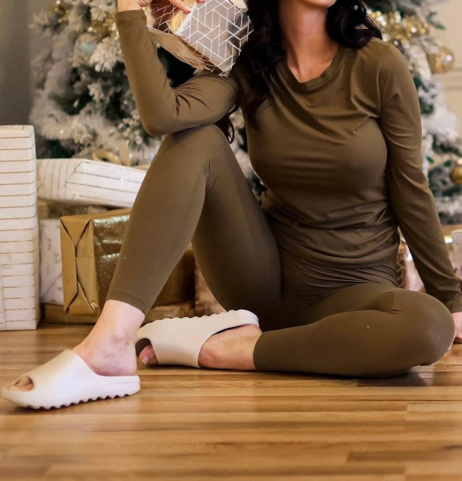 Throw it on and go! Meet the Long Sleeve Crew Neck Top & Legging Set by Little Secret Of Mine, a must-have for any athleisure wardrobe. This women's ensemble features cozy long sleeves and is crafted from a blend of 90% polyester and 10% spandex, offering a buttery soft feel and stretchy comfort. With a sleek pull-on closure and elastic waistband, the set promises a body-hugging, slim fit complemented by a skinny leg design. Styled in Dusty Olive, it's perfect for both fitness pursuits and relaxed days, embodying effortless style and comfort for this summer.
