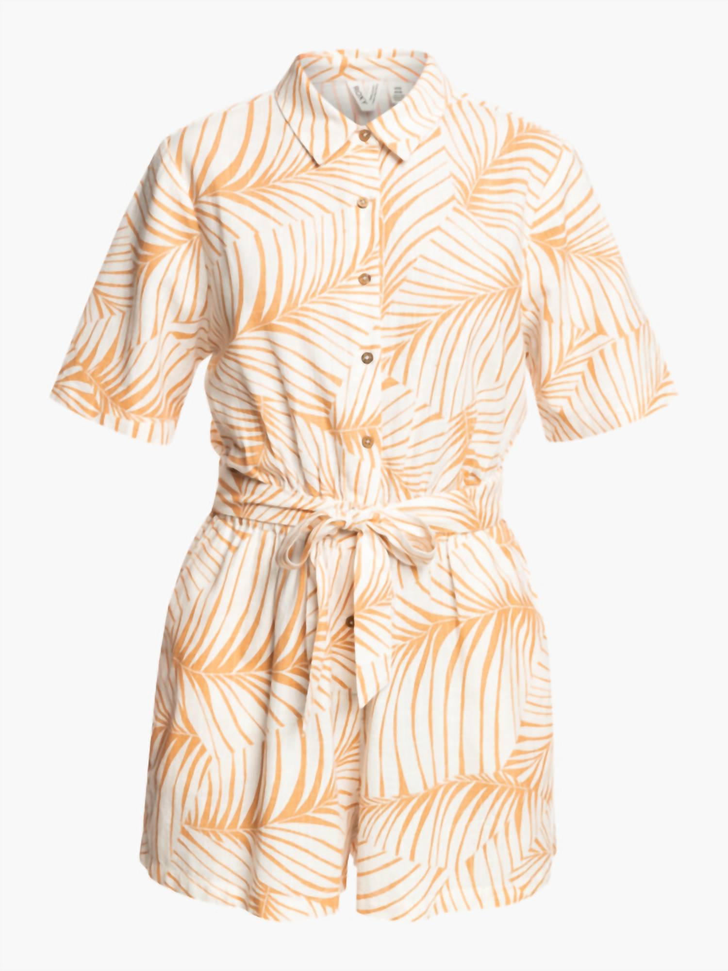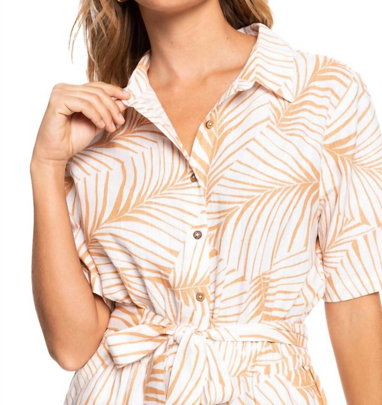 It doesn't take much for this one piece to look effortlessly cool. Add some statement jewelry to dress it up, or throw on some sneakers for a more casual vibe. Discover effortless vacation style with the Real Yesterday Romper by ROXY in a chic beige hue, perfect for summer getaways. Designed with a convenient elastic waist and a playful tie front, this patterned piece offers both comfort and style. Closure is achieved through button closure, ensuring a secure fit. This romper is tailored for women and features functional pockets for added practicality.