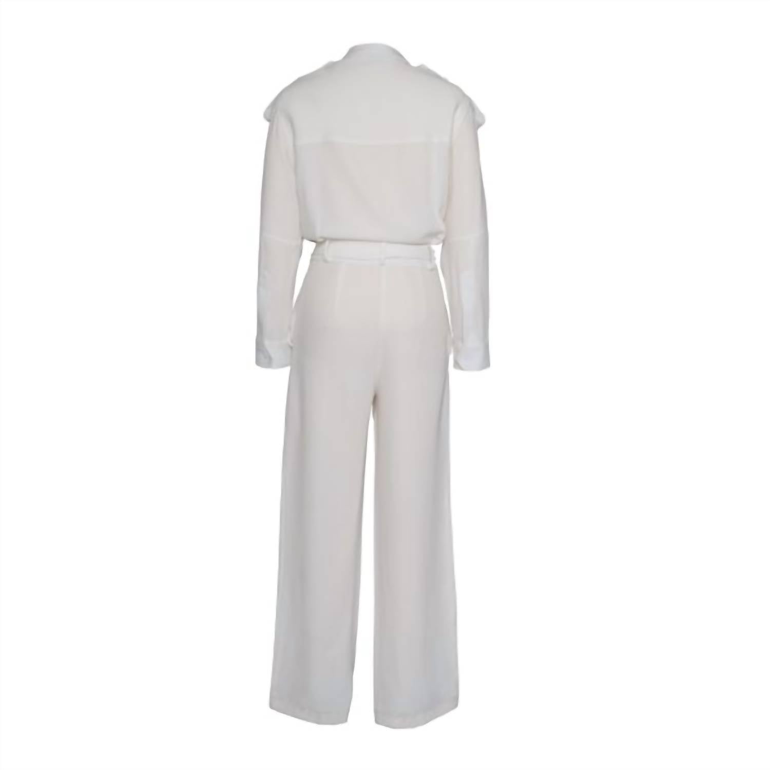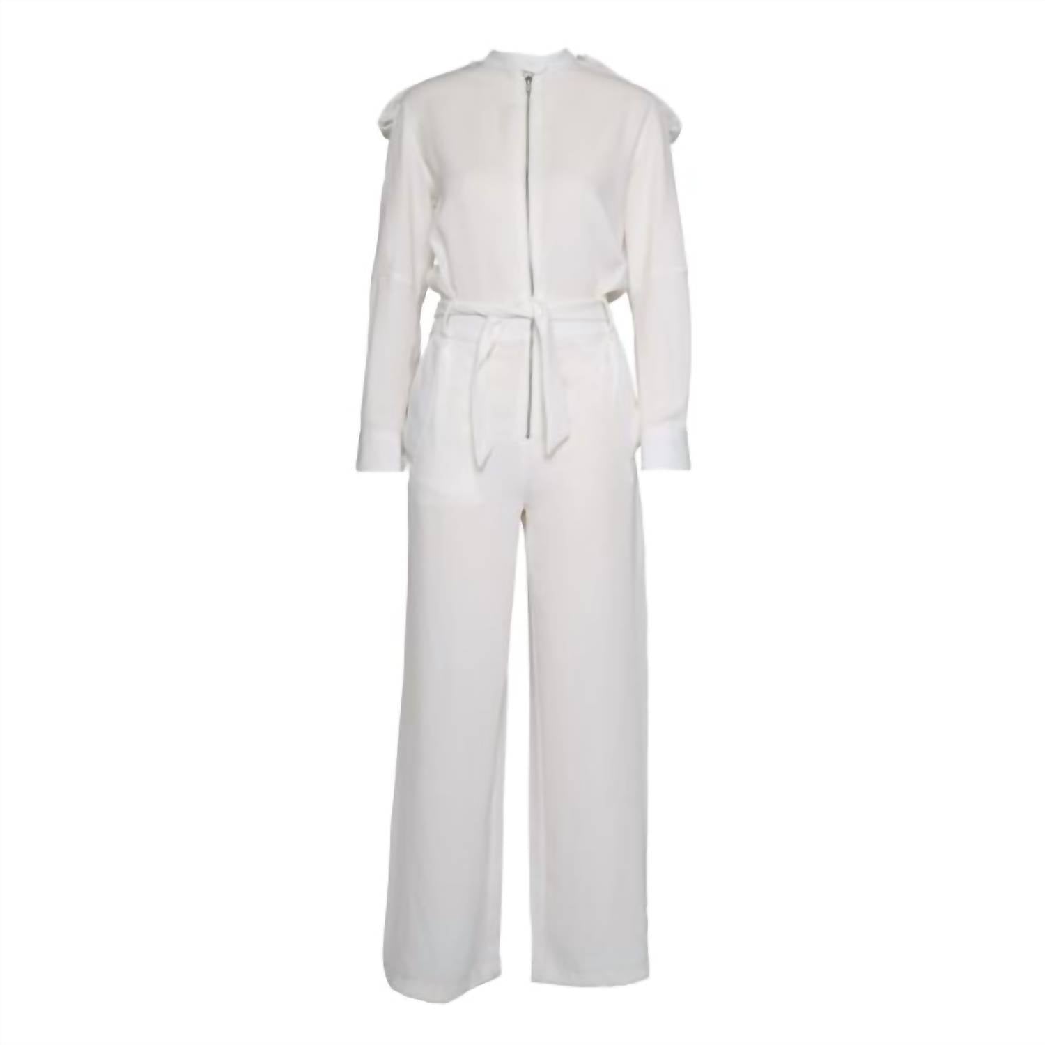 It doesn't take much for this one piece to look effortlessly cool. Add some statement jewelry to dress it up, or throw on some sneakers for a more casual vibe. Introducing the Tami Jumpsuit by NU Denmark, a sophisticated addition to your spring wardrobe in a chic creme color. This solid pattern jumpsuit features a convenient zip closure and practical pockets, perfect for any vacation occasion. The regular fit pants with a flattering wide leg and mid-rise waist create a timeless silhouette. Embrace the monochrome trend with this versatile piece, easily styled with heels or trainers for any outing.