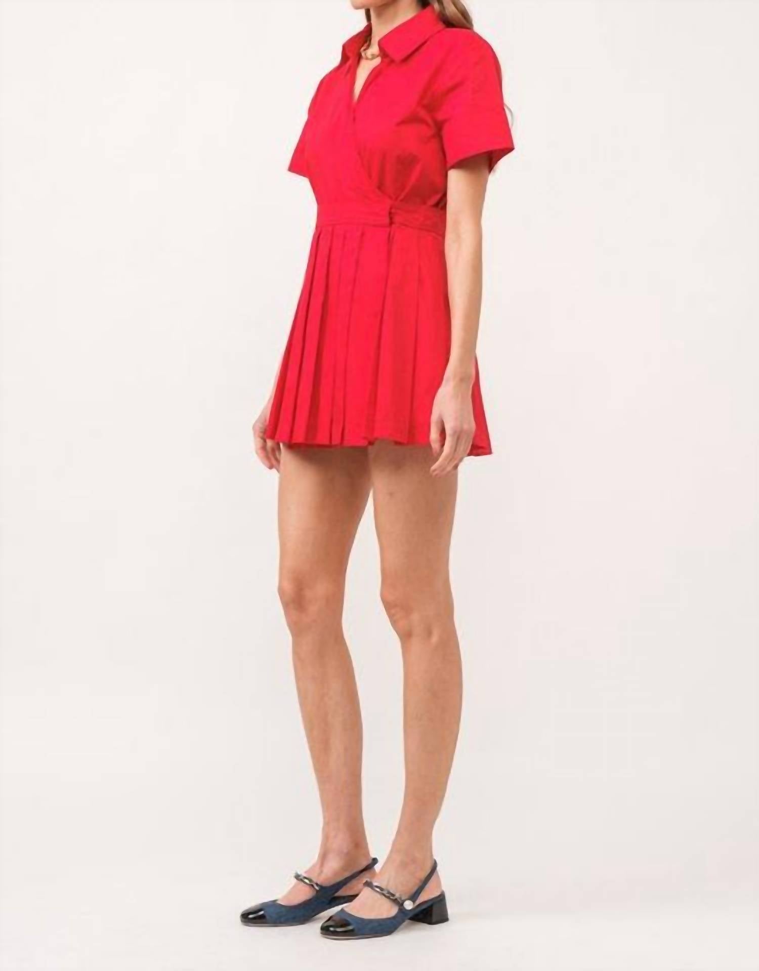 The perfect outfit choice when you you need something quick to throw on and still want to look efforlessly cool. Step into summer style with the Lola Romper by Sofie the Label, a versatile red piece perfect for any occasion. This romper is crafted from breathable cotton-poplin, offering comfort and a sophisticated look with its pleated design. Garment Length: High rise with a relaxed fit, it ensures a flattering silhouette. Care: Hand wash cold to maintain its quality.