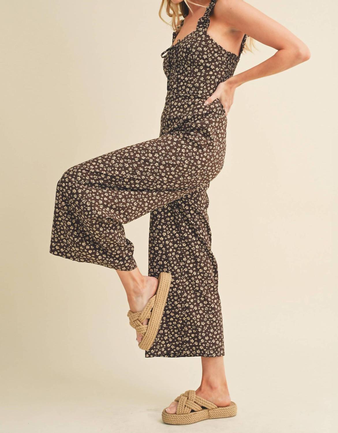 The perfect outfit choice when you you need something quick to throw on and still want to look efforlessly cool. Embrace the essence of elegance with the Brandi Floral Jumpsuit from AEMI + CO, perfect for any Boho Chic occasion. This jumpsuit is crafted in 100% polyester and features a stunning floral pattern, complemented by a relaxed fit and wide-leg design for ultimate comfort. The pull-on closure ensures ease of wear, while machine wash care keeps maintenance hassle-free. Unveil your sophisticated side in this vibrant piece, ideal for travel and special gatherings.