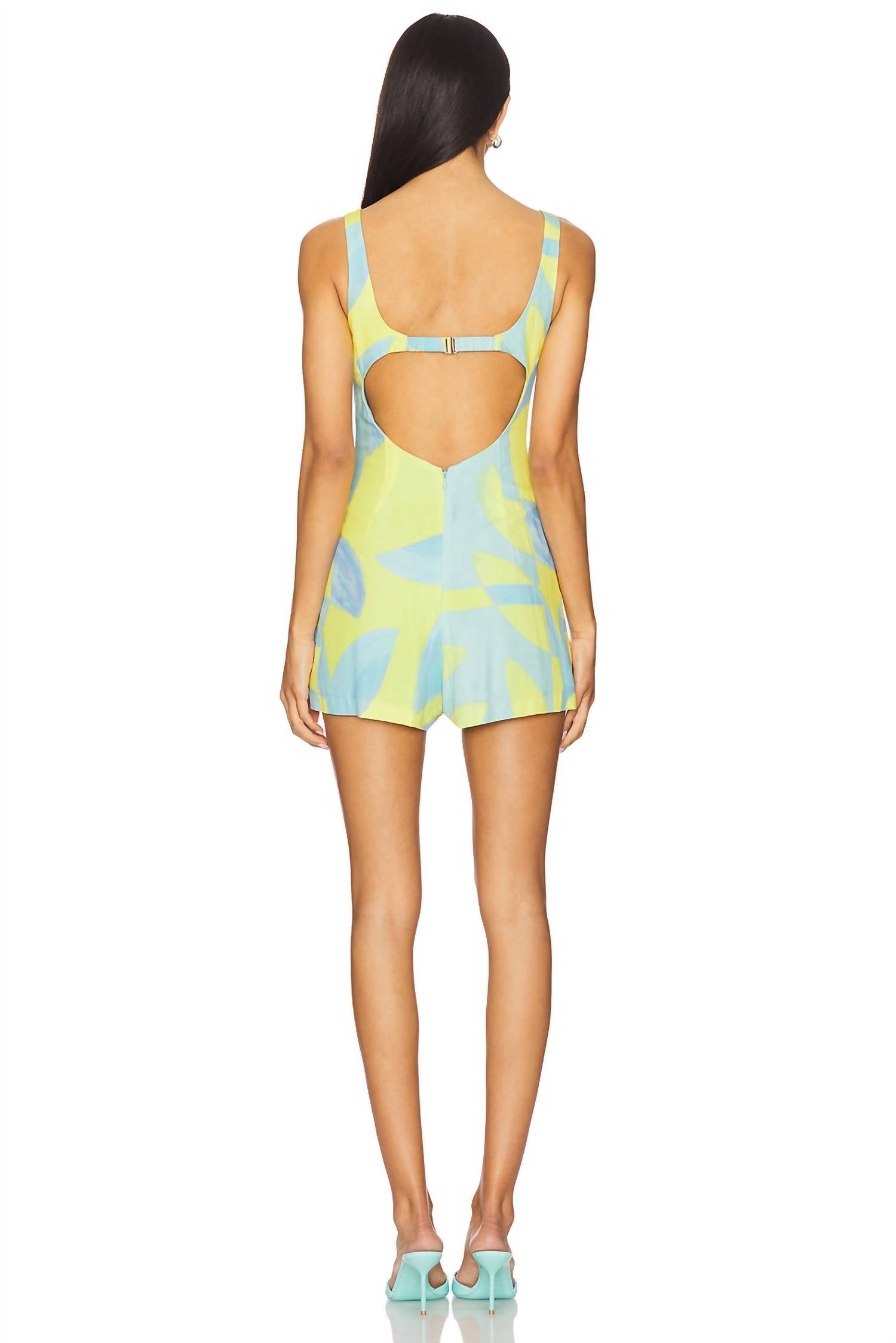 The perfect outfit choice when you you need something quick to throw on and still want to look efforlessly cool. Elevate your summer wardrobe with the Francie Romper by Amanda Uprichard in a striking Echo Print. This sleeveless romper offers a shift mini silhouette with a chic open back detail and interior shorts for added comfort. Crafted from 100% Rayon, it features a center back zipper and bra closure for a secure fit. Care: Dry clean only.