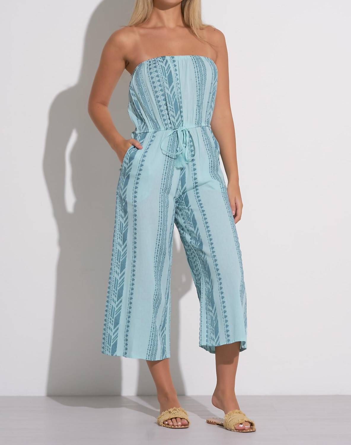Throw it on and go! The Elan Blue Two-Tone Strapless Jumper Romper is a chic and versatile piece designed for both comfort and style. This strapless jumper features a two-tone blue color scheme, adding depth and visual interest to the design. The elasticized waistband ensures a secure and flattering fit, while the wide-leg silhouette offers a relaxed and elegant look. Crafted from lightweight and breathable fabric, this jumper is ideal for various occasions, from casual outings to beachwear. The pull-on style provides ease of wear, and the absence of straps highlights the shoulders and neckline, adding a touch of femininity.