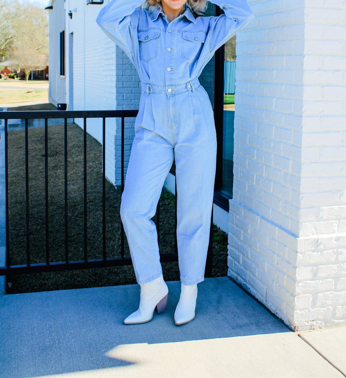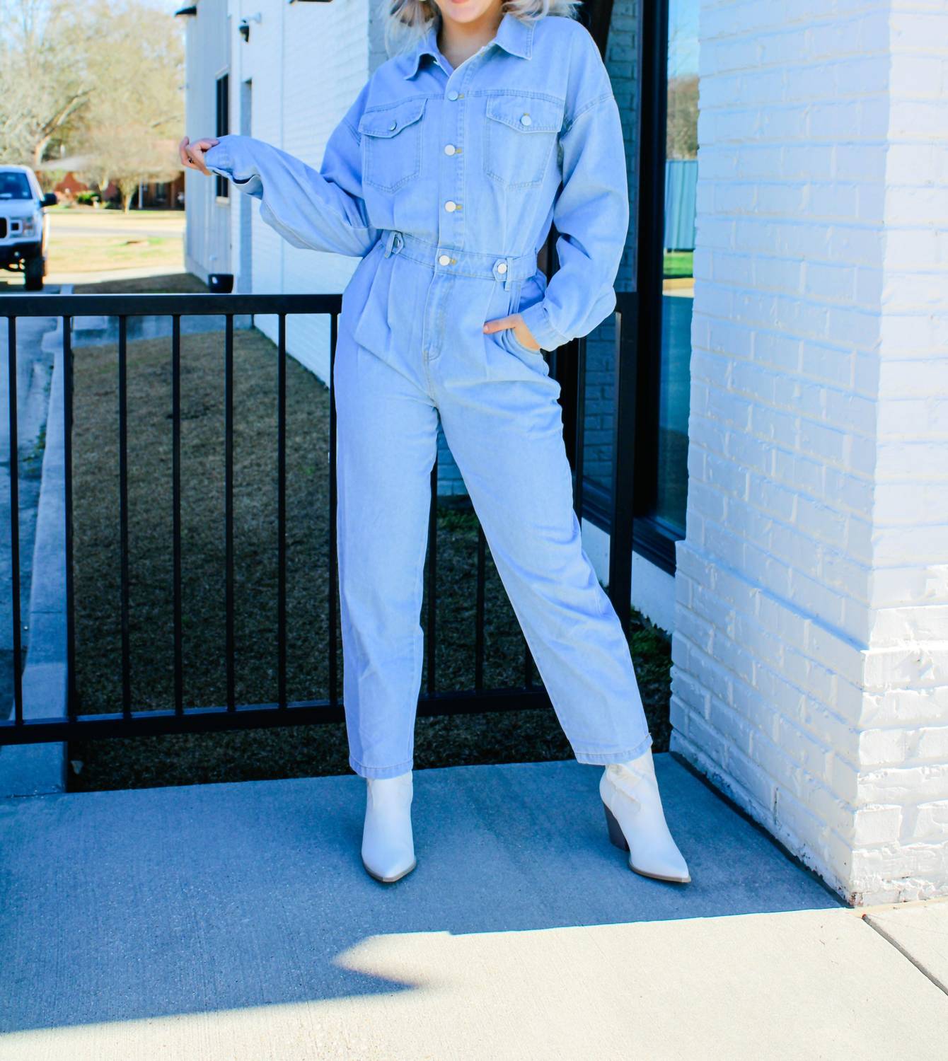 The perfect outfit choice when you you need something quick to throw on and still want to look efforlessly cool. Discover the Cailey Long Sleeve Jumpsuit by MABLE, the ultimate denim piece for your wardrobe. Crafted from 80% Rayon and 20% Polyester, this light wash jumpsuit offers a relaxed fit with straight leg style, making it perfect for engagement celebrations or a stylish Easter gathering. The solid pattern and button closure add a touch of sophistication, while convenient pockets provide practicality for your streetwear-inspired look. Ideal for fall, this versatile jumpsuit combines comfort with undeniable style.