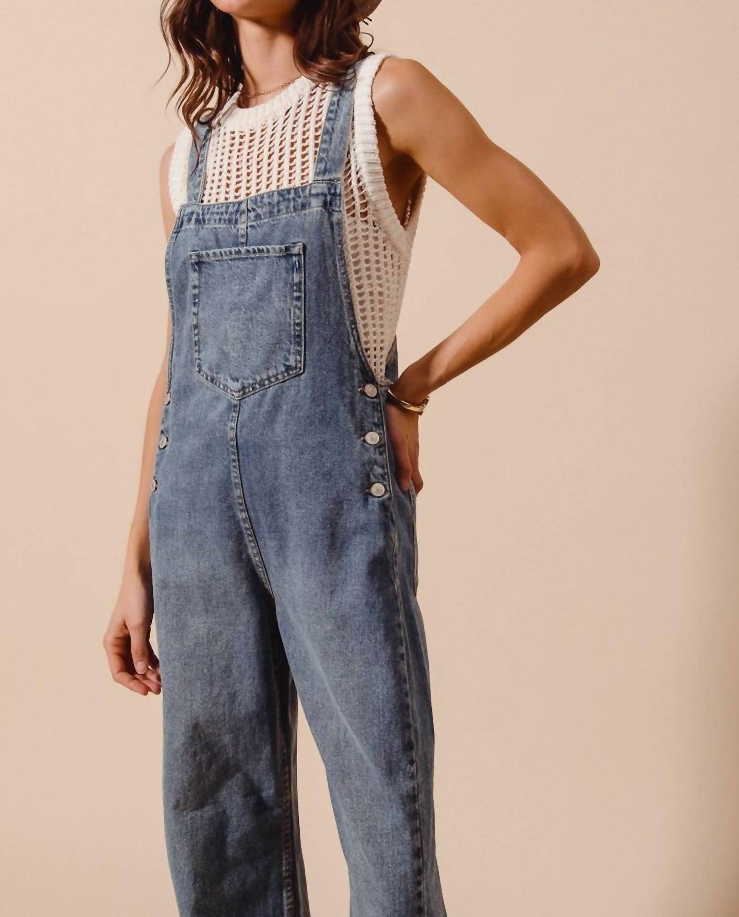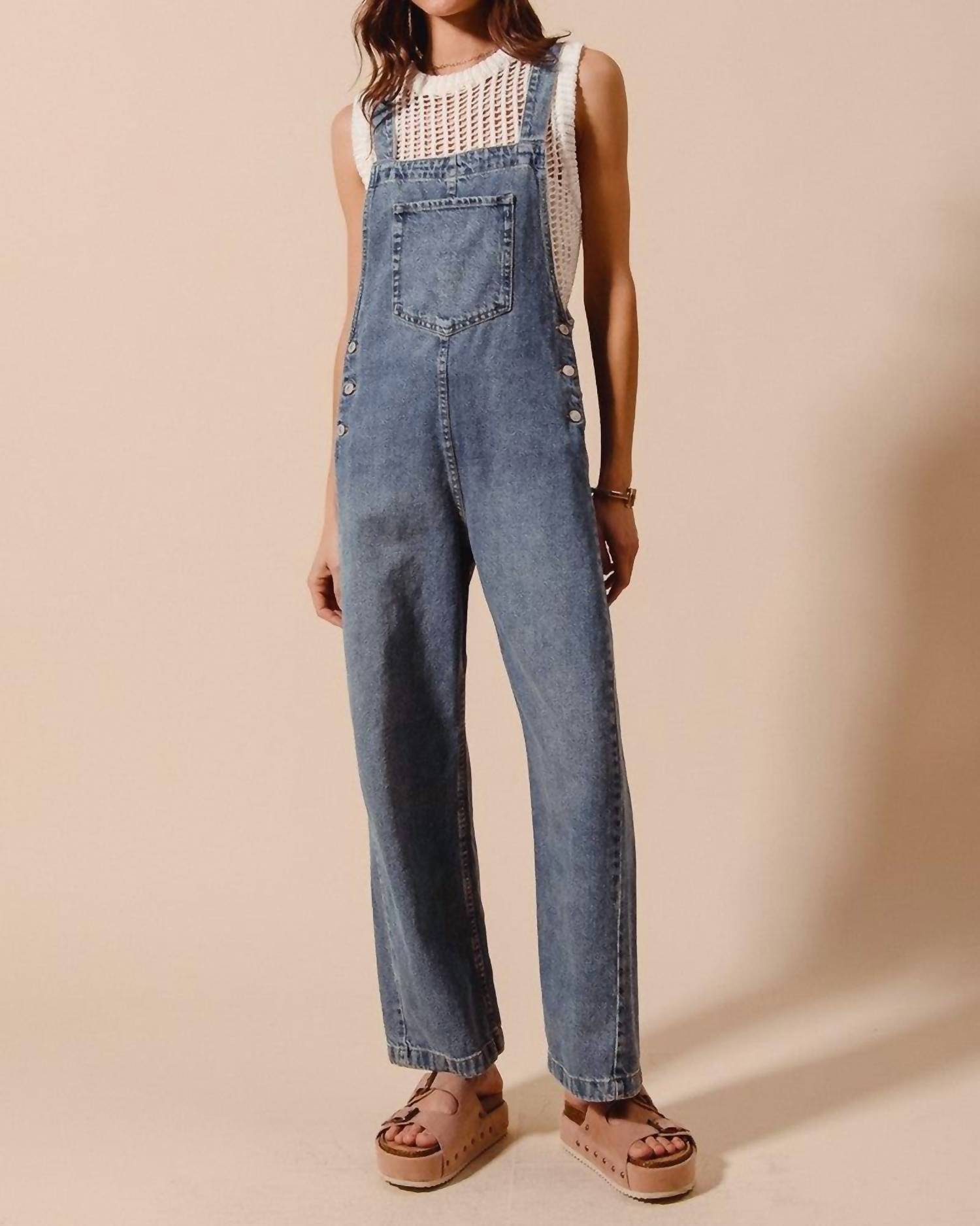 So Me - Women's Washed Denim Wide Leg Overall