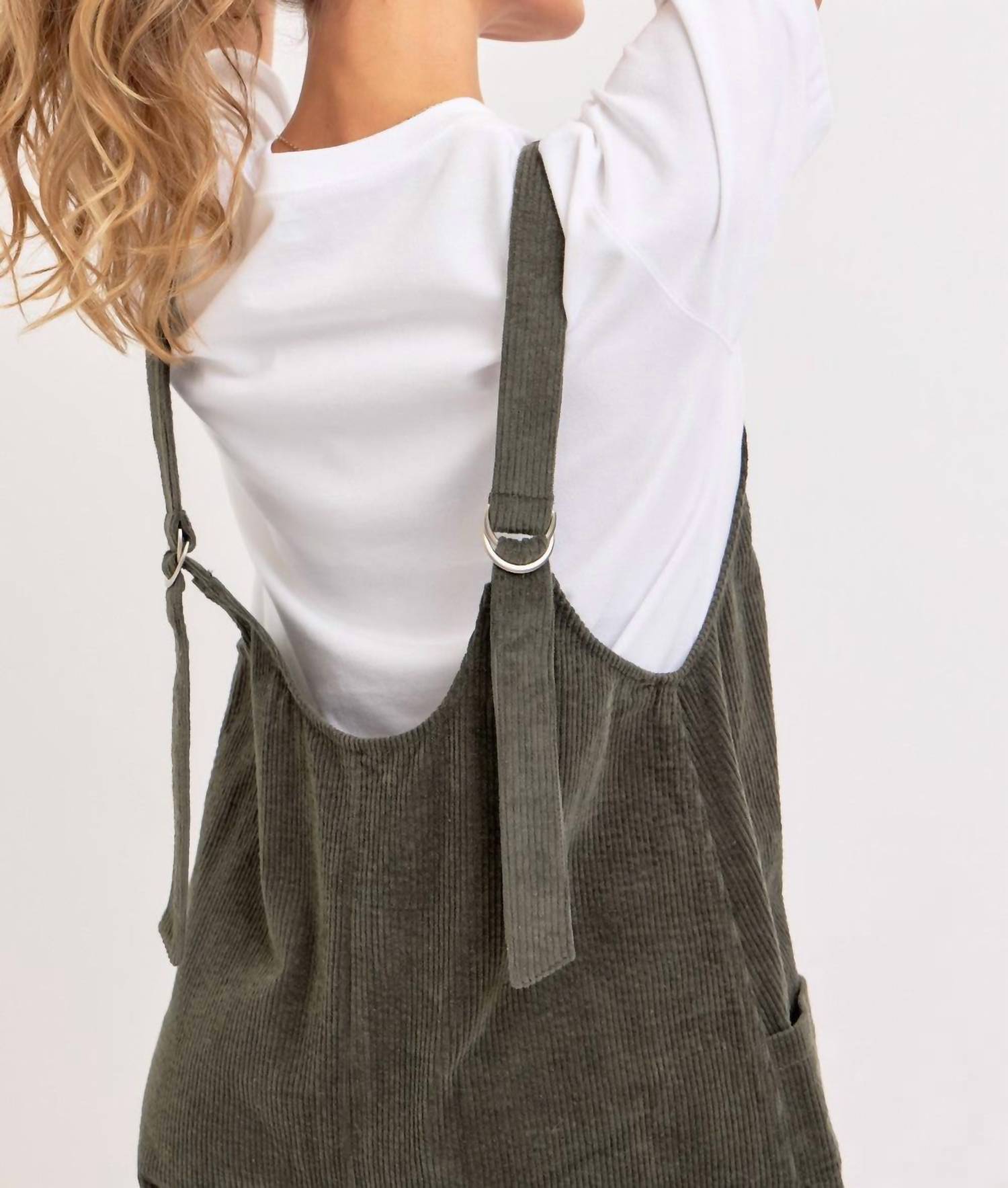 It doesn't take much for this one piece to look effortlessly cool. Add some statement jewelry to dress it up, or throw on some sneakers for a more casual vibe. Step into the season with the Corduroy Overalls by Sweet Lovely by Jen, the ultimate blend of comfort and style. Made from 98% Cotton and 2% Spandex, these olive-colored textured overalls feature a relaxed fit with adjustable shoulder straps for the perfect fit. The design includes oversized patch pockets and a low scoop neckline, emphasizing both functionality and a vintage aesthetic. Ideal for a high-rise, everyday casual look, pair these straight-leg jumpsuits with your favorite tee or sweater for effortless travel attire.