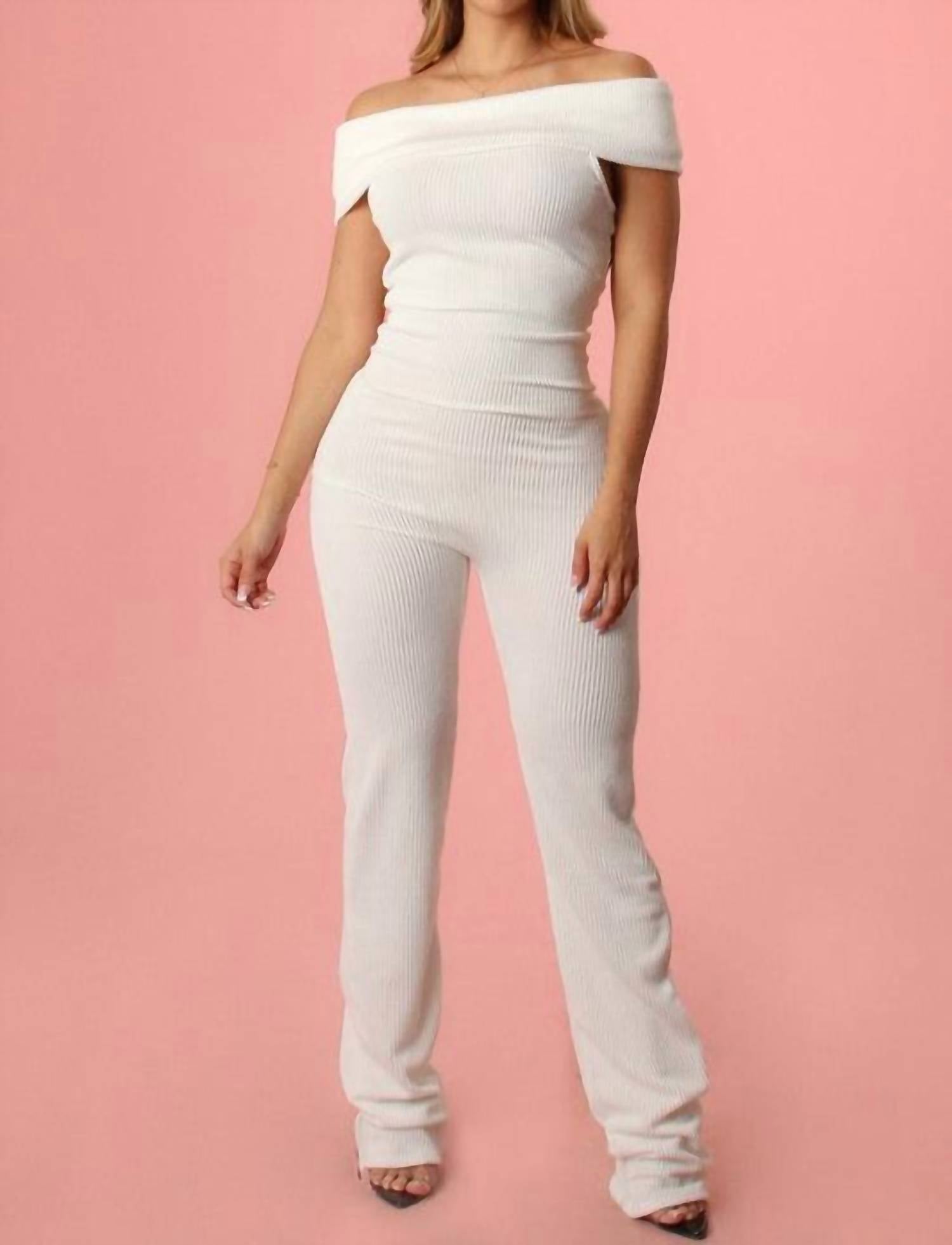 Yellow Cabbage - Ribbed Off Shoulder Jumpsuit